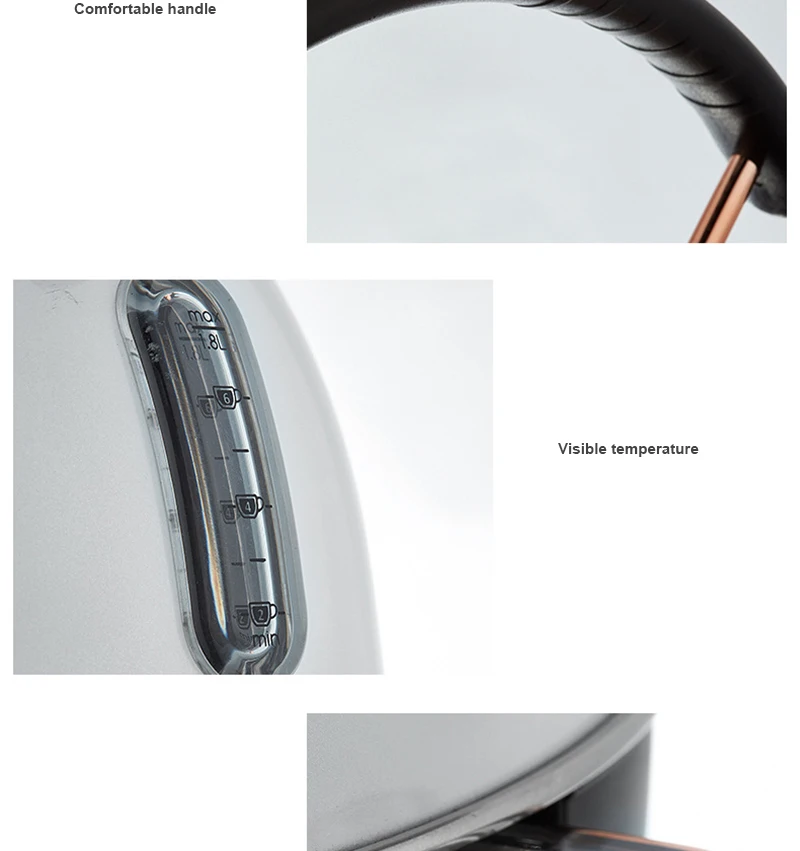 Информация о продукте Название: электрический чайник с термометром Емкость: 1.8л Мощность: 1800 Вт Мощность: 220-240 В/50 Гц Материал: пищевая нержавеющая сталь 304, силикон Вес нетто: 1,15 кг Цвет: белый/черный