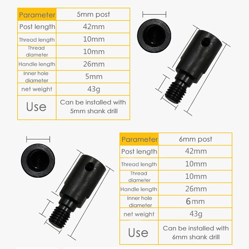 ** Широкое применение: соединительный стержень может быть установлен на сверле для шлифования, резки плитки, стекла, дерева, полировки металла и так далее.