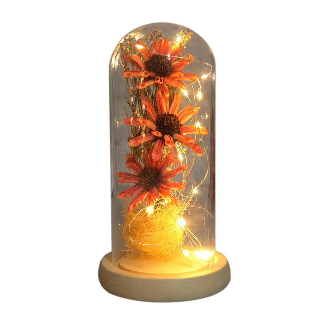 Имитация подсолнуха цветочный стеклянный чехол светодиодный микро пейзаж подарок