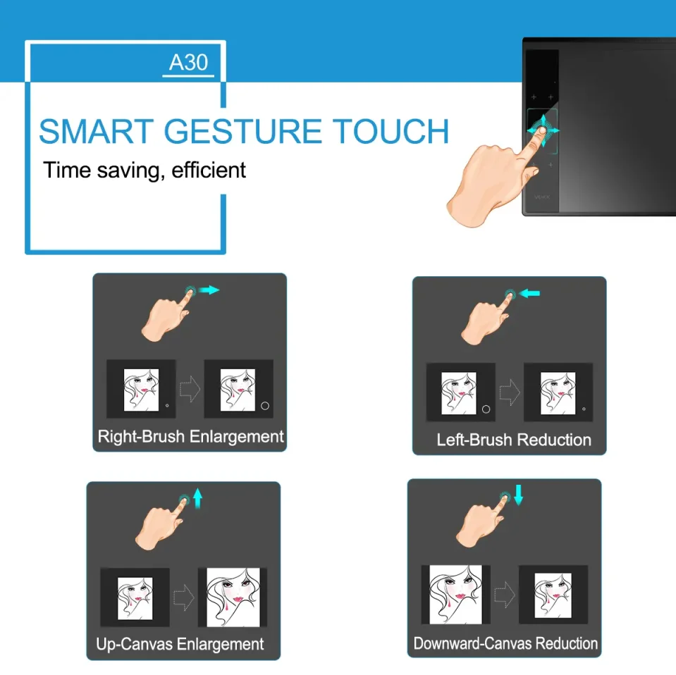 Название продукта: графический планшет Цвет: черный Бренд: VEIKK Модель: A30 Технология: электромагнитный АЦП Активная область: 10x6 дюймов Чувствительность к давлению: 8192 уровней Разрешение: 5080 LPI Скорость отчета: 250 RPS Высота чтения: 10 мм Горячие клавиши: четыре сенсорных клавиши и прикосновение жестов Интерфейс Поддержка: USB Ручка: пассивная ручка P06 Карман для ручки: Да USB кабель: Да (150 см) Совместимость с операционными системами Windows 10/ 8/ 7/ Vista/ XP (32/64 бит) или более позднюю версию Mac OS 10,6 или более поздней версии Размер (Д * Ш * В): 332X212 X9 мм