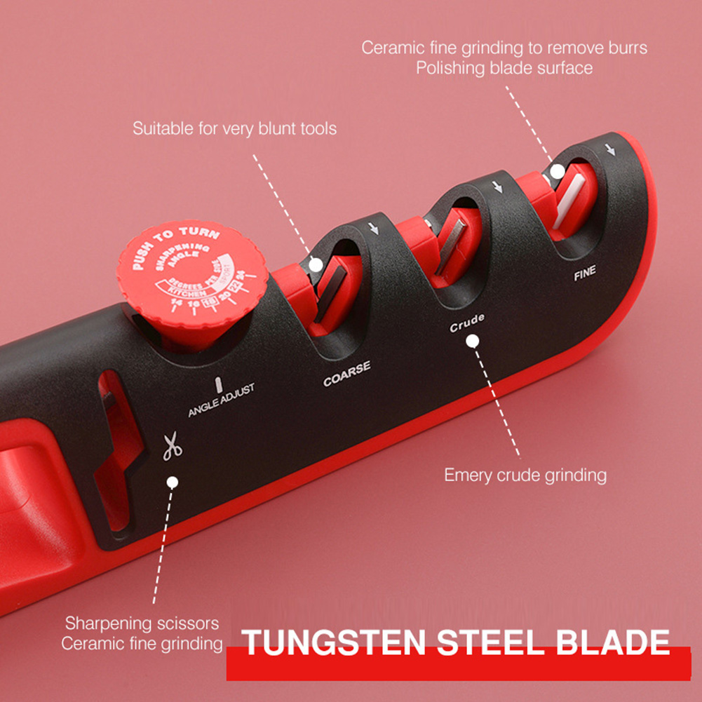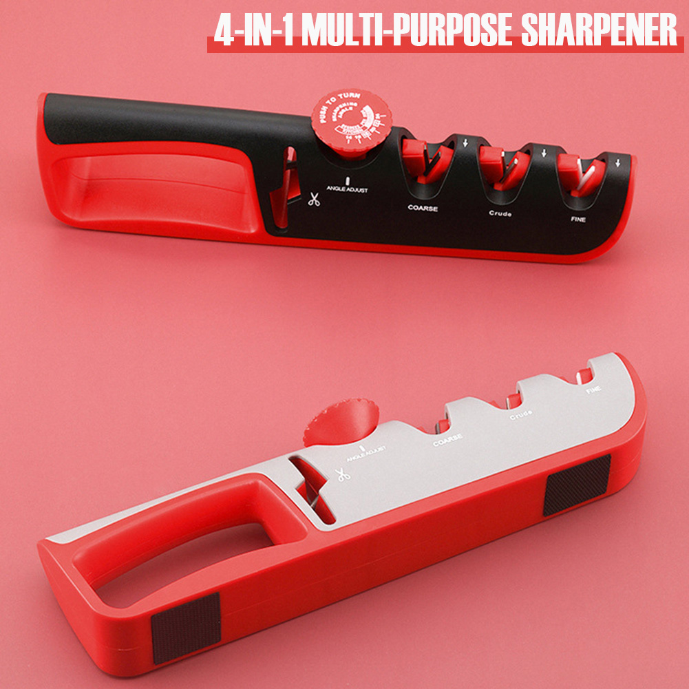 * 1. 4 отделения для заточки, изготовленные из керамики/вольфрамовой стали/наждачной стали, работают на ножницах, ножах шеф-повара, фруктовых ножах, кливере ножей для тонкой или грубой заточки и полировки. Примечание: Не для зубчатых лезвий.