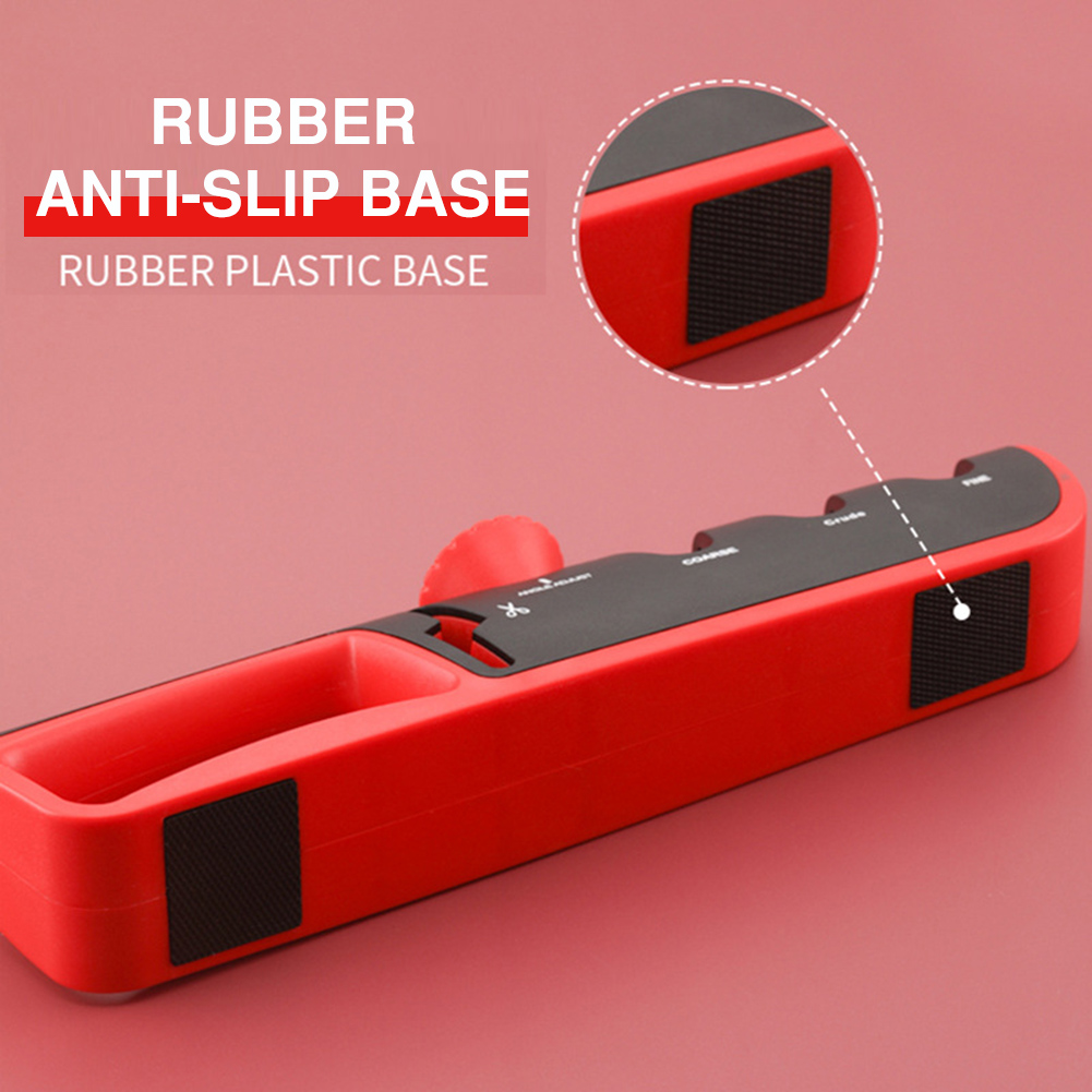 * 4. Расширенная рукоятка из нержавеющей стали обеспечивает прочность и долговечность, сохраняя точилку на месте для безопасной заточки.