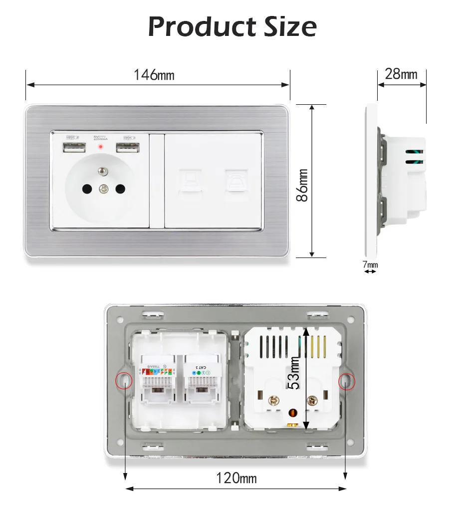 1. 100% абсолютно новая и высококачественная панель настенного гнезда. 2. Этот продукт должен быть установлен профессиональным электриком