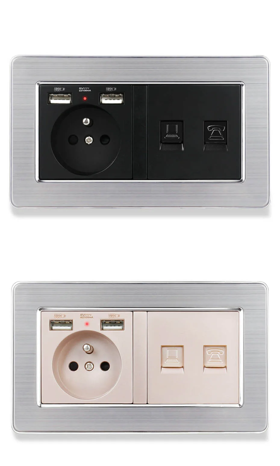 UNKAS нержавеющая сталь панель французский стандартный разъем с 2 USB зарядным портом + RJ45 Интернет и RJ11 2 ядра телефонный разъем
