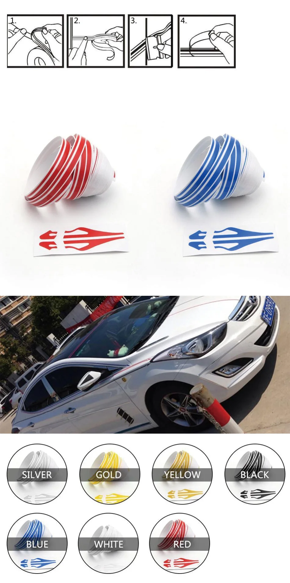 1 рулон многоцветных полосатых штифтов, двухполосная клейкая лента, наклейка на кузов автомобиля, виниловая наклейка, украшение автомобиля, инструменты для укладки