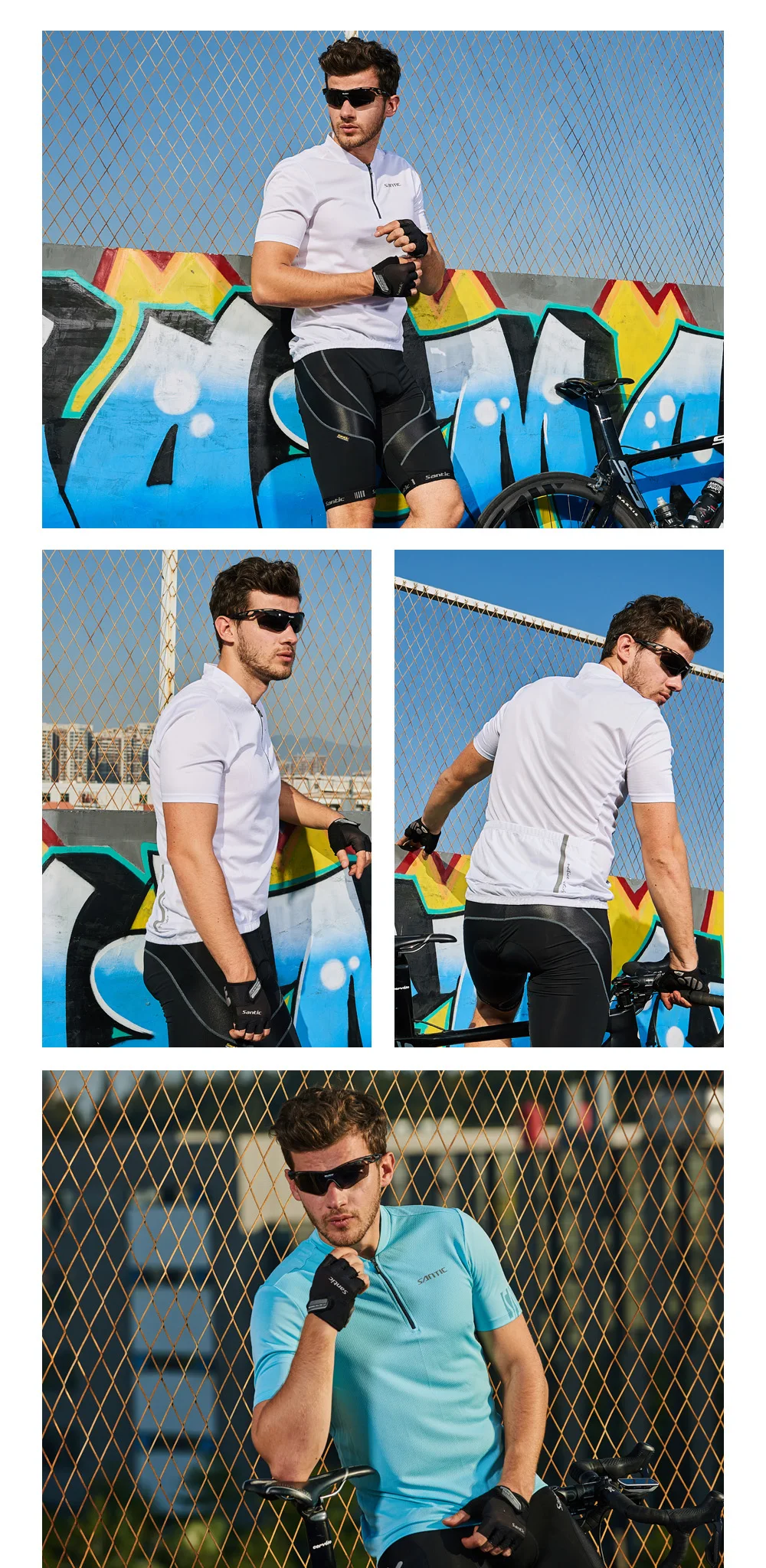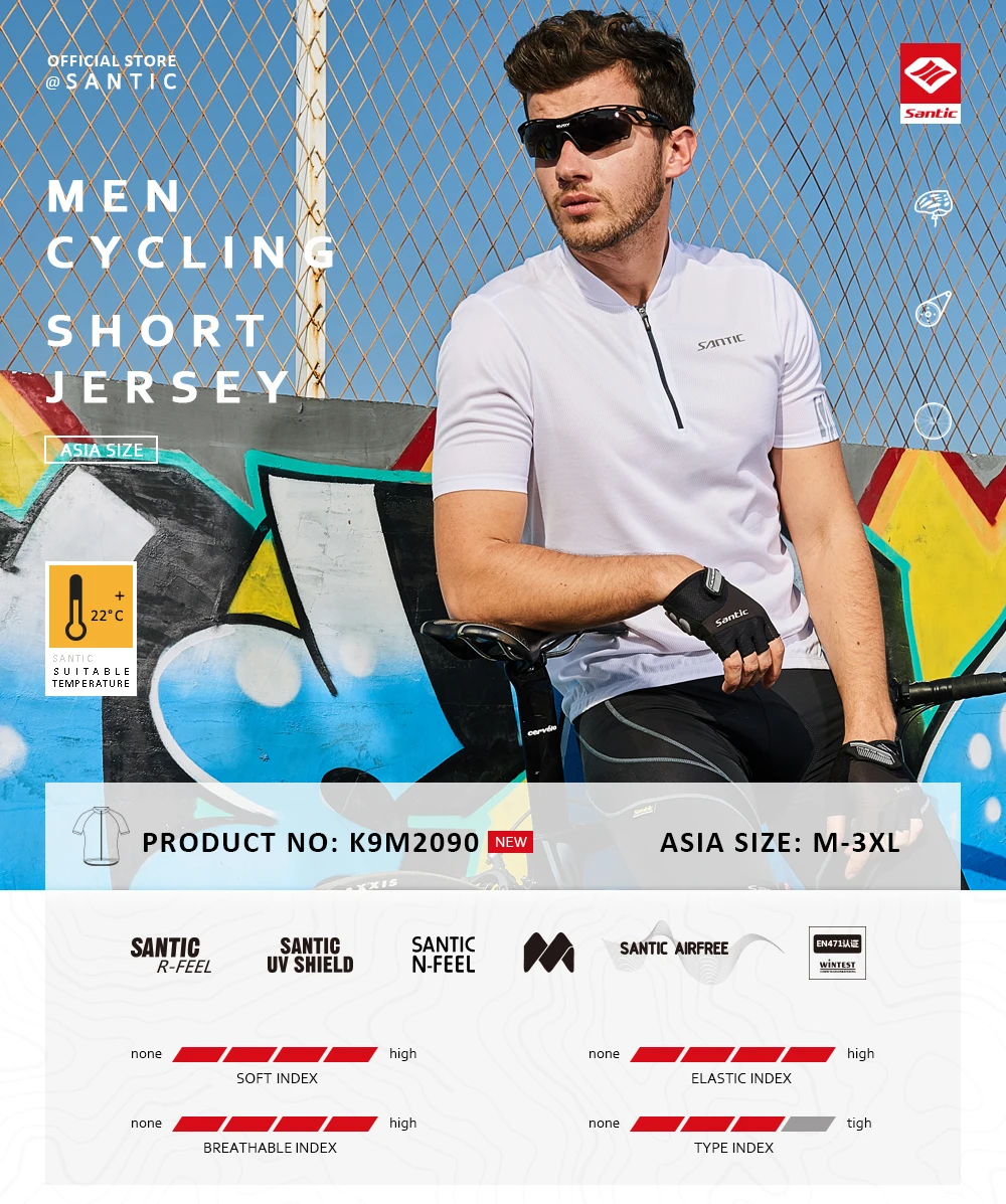 Santic Велоспорт Джерси мужские велосипедные рубашки с коротким рукавом Светоотражающие дышащие влагостойкие Wickin MTB велосипедные уличные спортивные костюмы