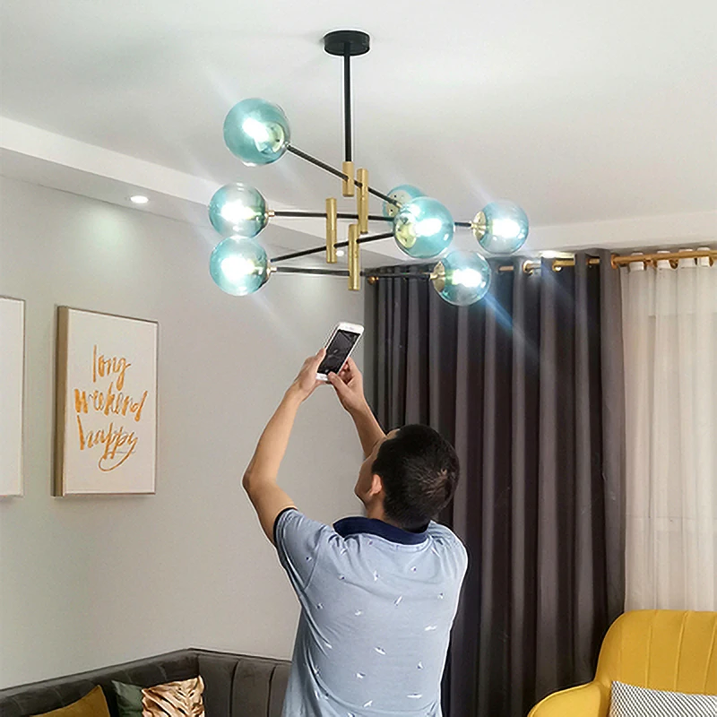 Современный скандинавский креативный стеклянный шар, люстра, подвесной светильник для гостиной, спальни, дома, ветка, подвесной светильник