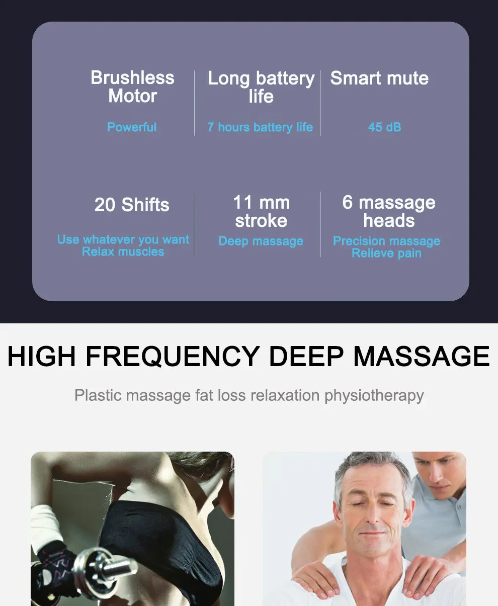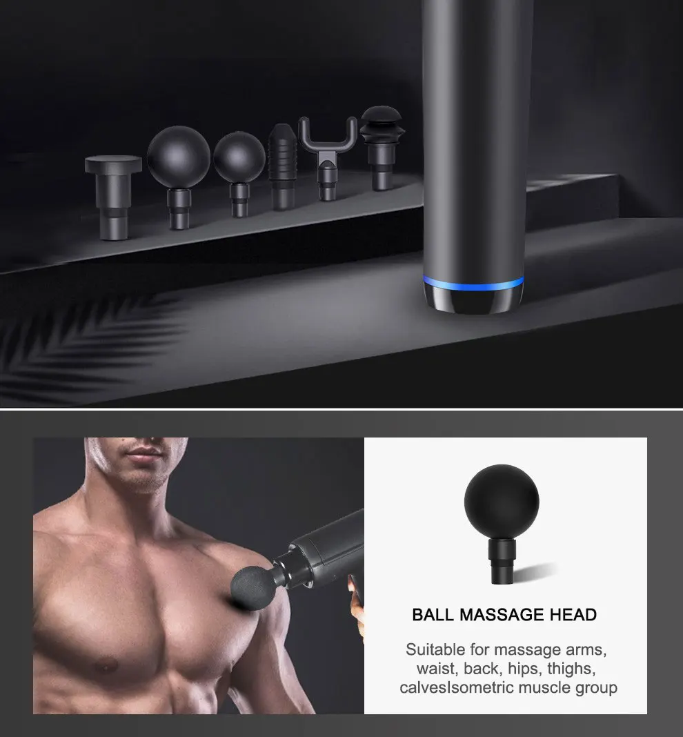 Новейший 3200р/мин 20-зубчатая ГЛУБОКАЯ ТЕРАПИЯ, массажный пистолет, расслабляющий боль, массажер для мышц, светодиодный цифровой умный сенсорный с 6 массажными головками