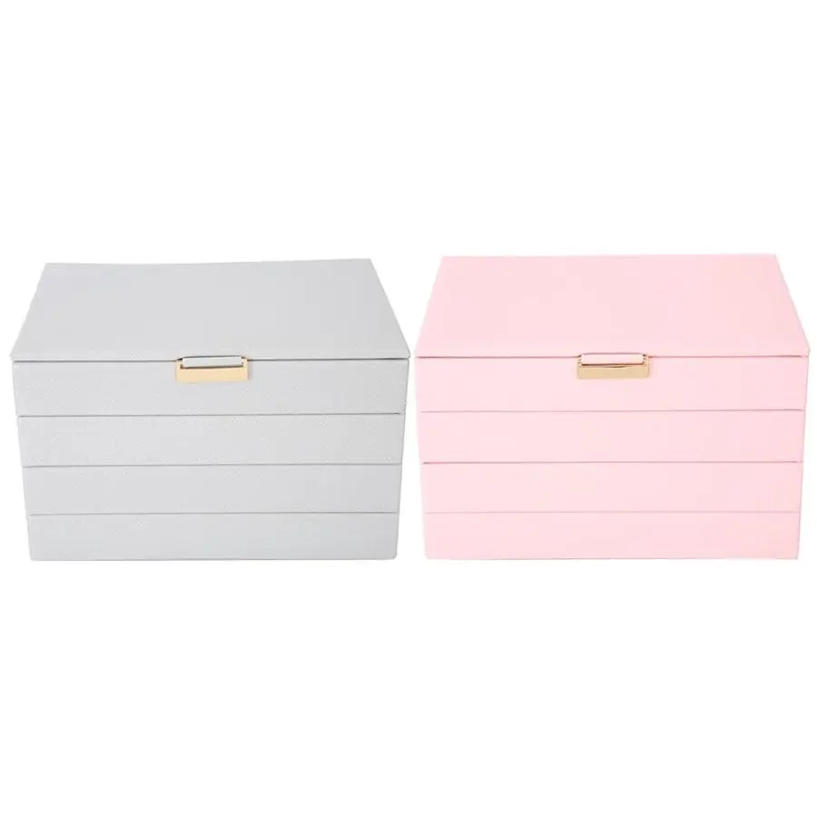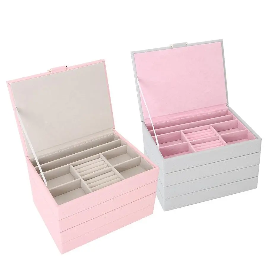 Органайзер для ювелирных изделий, 4 слоя, чехол из искусственной кожи, для ушей, кольцо-гвоздики, дисплей, Женский чехол, портативная упаковка, коробка для хранения, съемная для дома