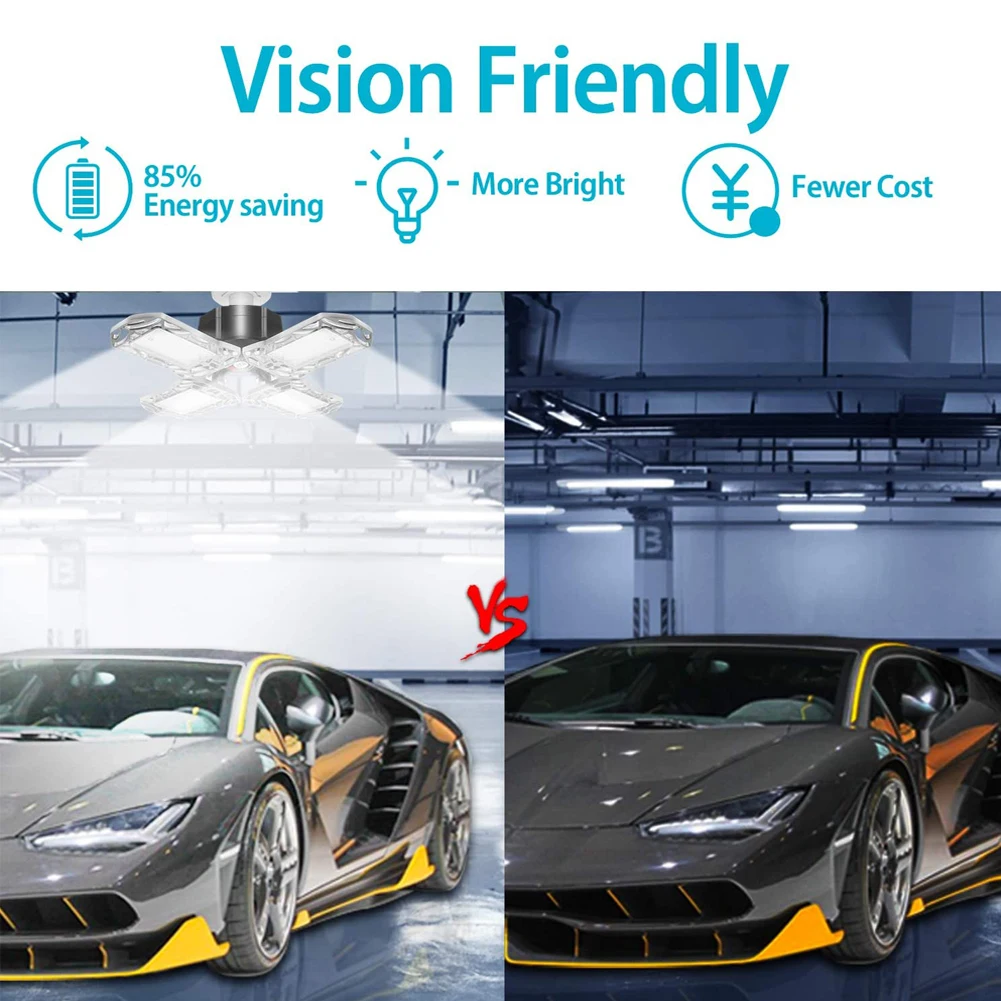 Лампа в гараже подходит для освещения больших площадей, таких как гараж, сарай, подсобное помещение, склад, магазин, подвал, офис, тренажерный зал, стадион, бадминтон корт, баскетбольный Зал и т. д.