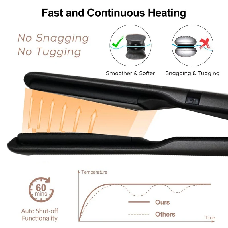 30s Мгновенный нагрев и Равномерная температура-это плоское железо изготовлено из двух двойных PTC пластин для обеспечения быстрого и равномерного нагрева волос, чтобы сэкономить ваше время. Плавающие керамические пластины Нагреваются быстро и равномерно в течение 30 секунд, 1 дюймовая пластина достаточно широкая для любой длины волос.