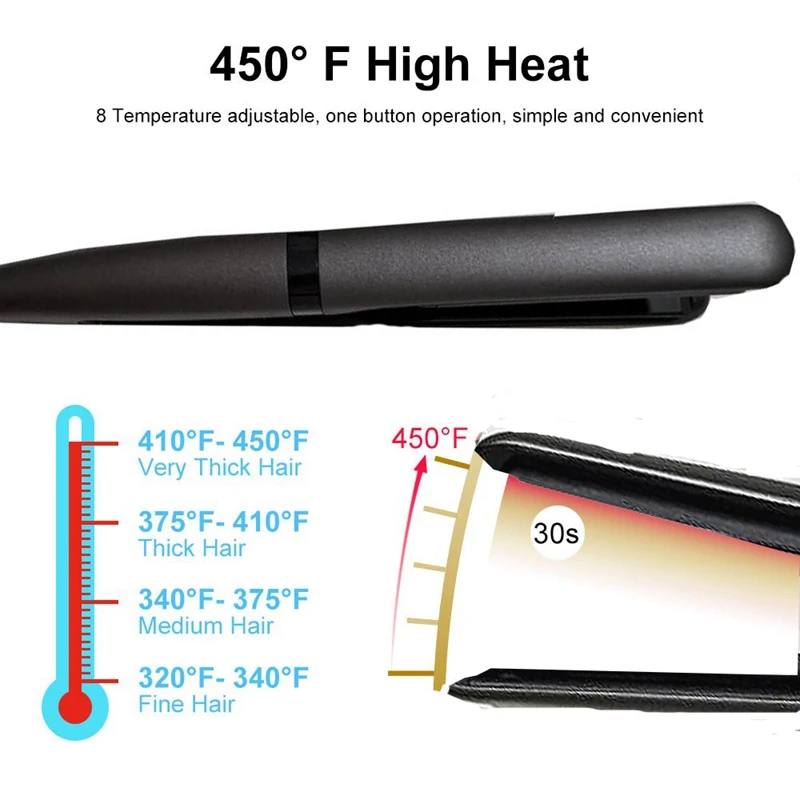 8 температурных настроек и 60-минутное автоматическое отключение-по сравнению с обычными выпрямителями для волос, наш турмалиновый керамический плоский утюг разработан с 8 регулируемыми температурными режимами от 310 по Фаренгейту-450 по Фаренгейту. Оснащен функцией 60-минутного автоматического отключения и защитным корпусом ABS для обеспечения безопасности.