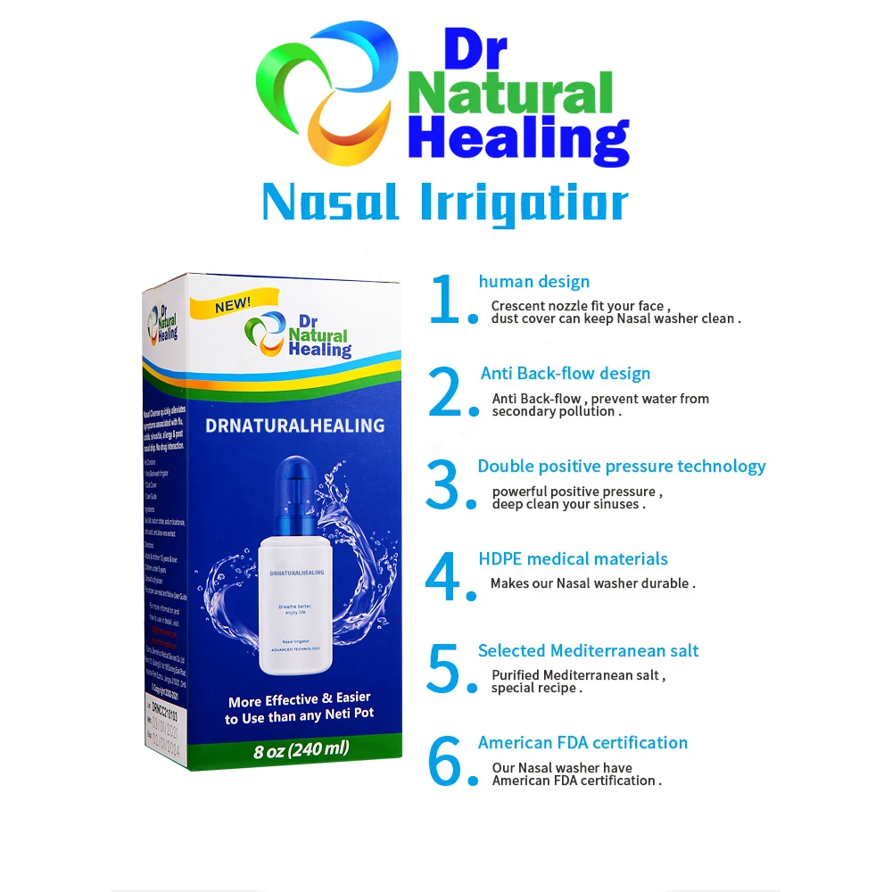 1. Человеческий дизайн: Сопло Полумесяца подходит для вашего лица, пылезащитная крышка может поддерживать чистоту носовой мойки. 2. Защита от обратного потока: Защита от обратного потока, предотвращение вторичного загрязнения воды. 3. Технология двойного положительного давления: Мощное положительное давление, глубокое очищение ваших пазух. 4.HDPE медицинские материалы Делает наши носовые мойки прочными. 5. Выбранная средиземноморская соль Очищенная средиземноморская соль, специальный рецепт. 6. Медицинское оборудование Наши носовые мойки имеют медицинское оборудование.