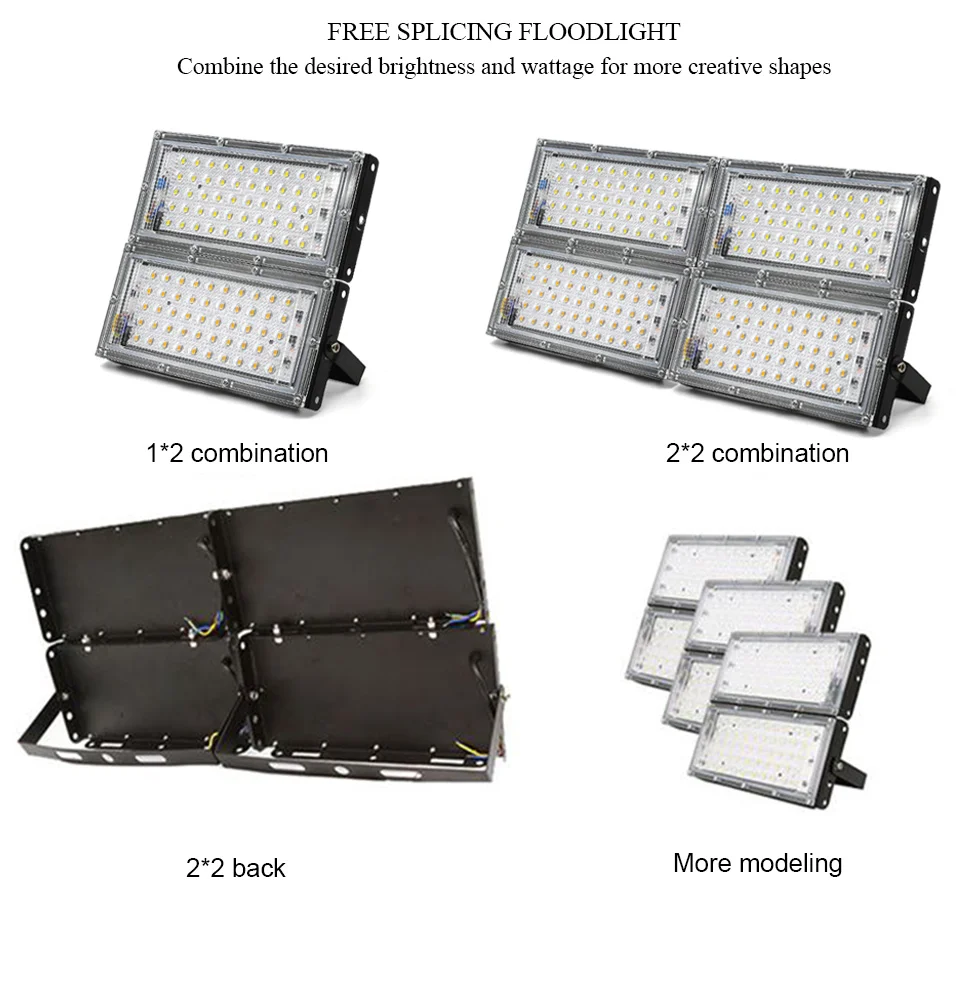 Описание: Название: светодиодный прожектор Мощность: 50 Вт 100 ВтНапряжение: AC220 ~ 240 В Тип светодиодного чипа: SMD 2835 Количество светодиодов: 50 светодиодных бусин Индекс цветопередачи: Ra80 Световой поток: 4500lm Цветовая температура: холодный белый/теплый свет