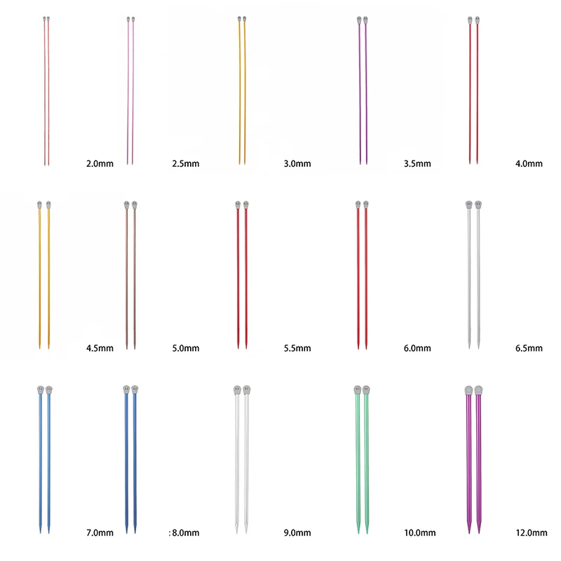 2Pcs Single Pointed Knitting Needles Pins Straight Aluminum DIY Weaving Tool