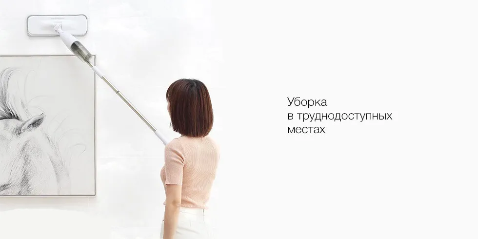 Мы позаботились о том, чтобы швабра была удобна людям разного роста. Ручка длиной 1.2 м позволяет детям и девушкам низкого роста помыть стены и потолки, а высоким обладателям швабры не придется нагибаться, чтобы протереть пол под столом. Со шваброй Xiaomi Deerma Water Spray Mop в квартире не останется загрязненных мест.