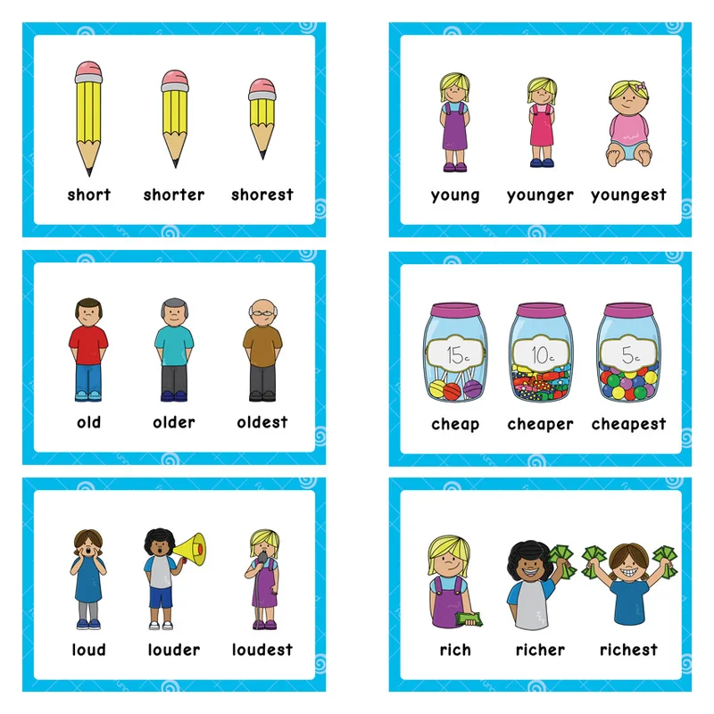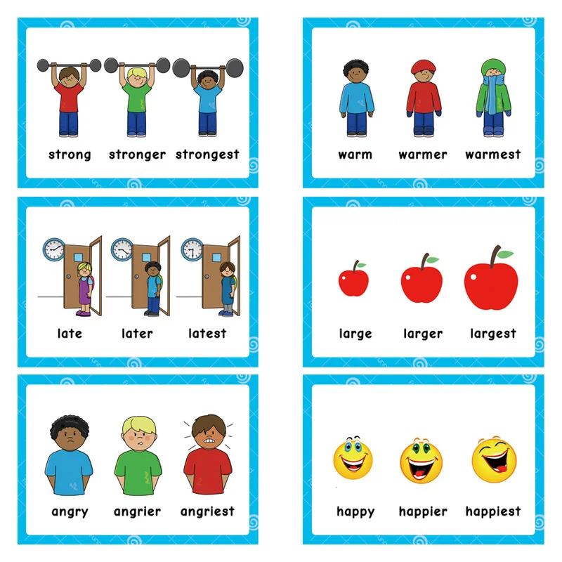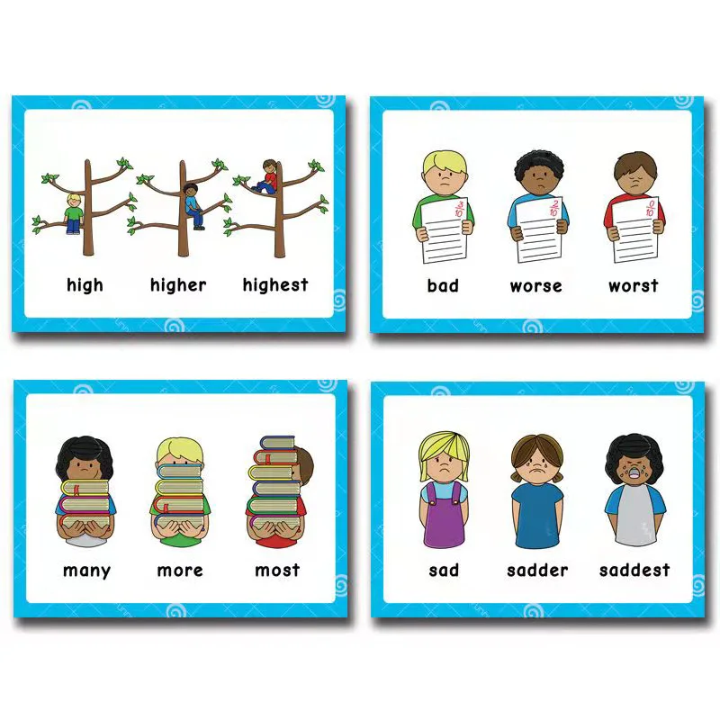 38 групп 114 слов Дети Обучающие флэш-карты английская грамматика когнитивные прилагательные степени сравнения изменение правила карты