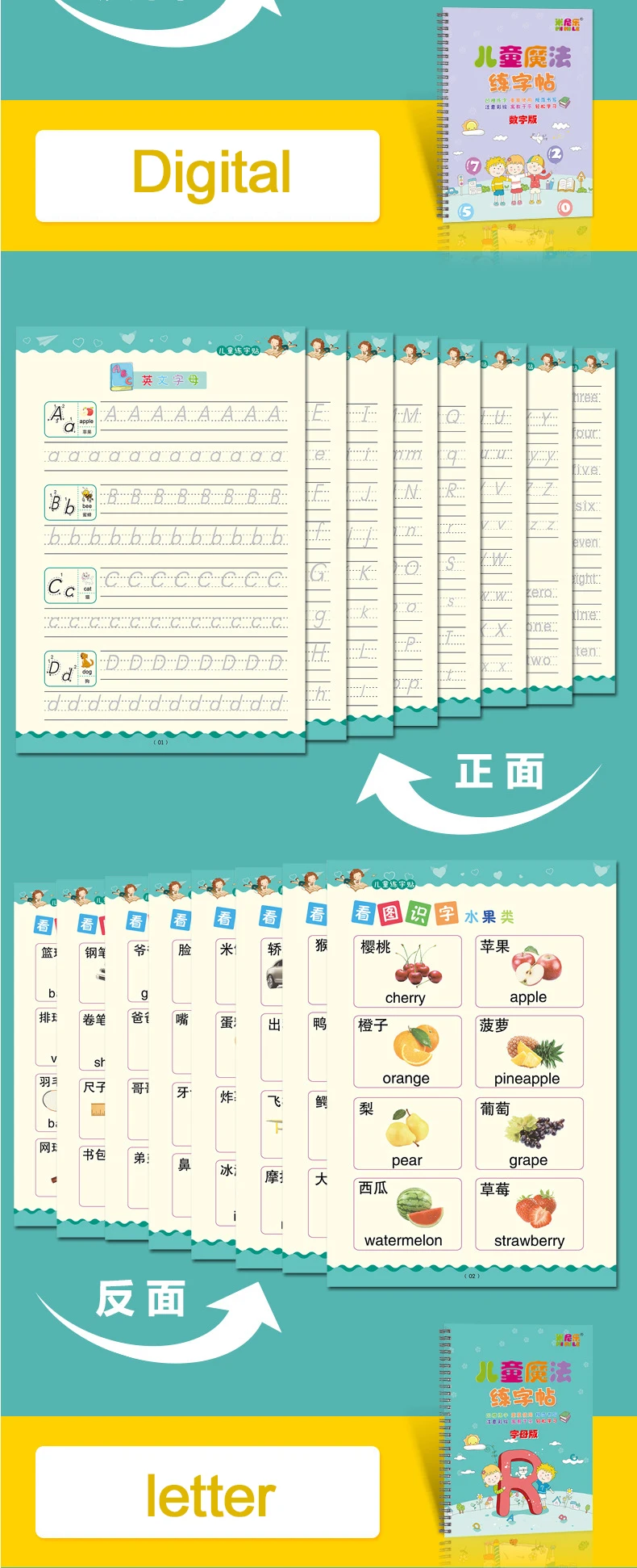 4 книжки, многоразовая тетрадь для каллиграфии, обучения алфавиту, живописи, арифметика, математика, Детская тетрадь для письма, тренировочные книжки, детские игрушки