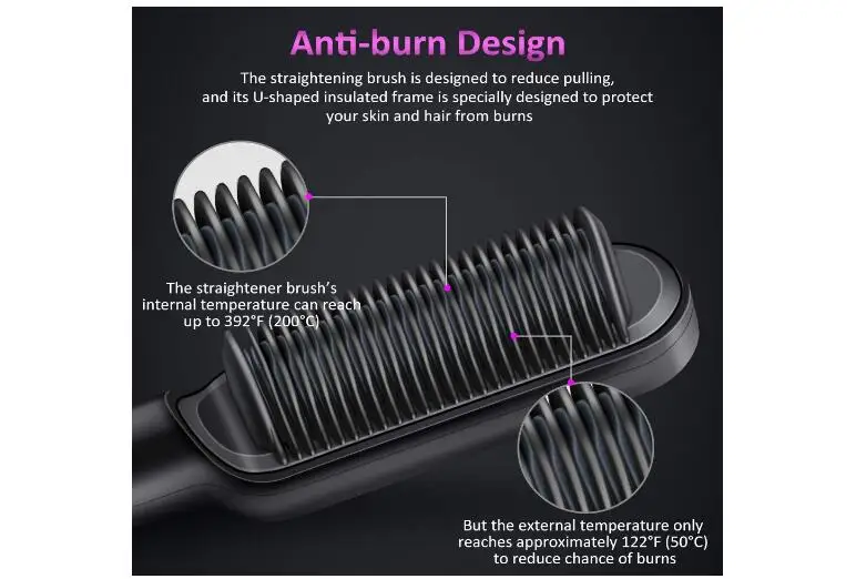 Название продукта: расческа для выпрямления волос Тип товара: прямые и кудрявые с двойным использованием Применимые волосы: сухие и влажные волосы Материал: PTC керамики Диаметр проводника: 21 мм-30 мм Лучшее время моделирования: менее 1 минуты Цвет: белый, черный, красный Мощность: 34 Вт
