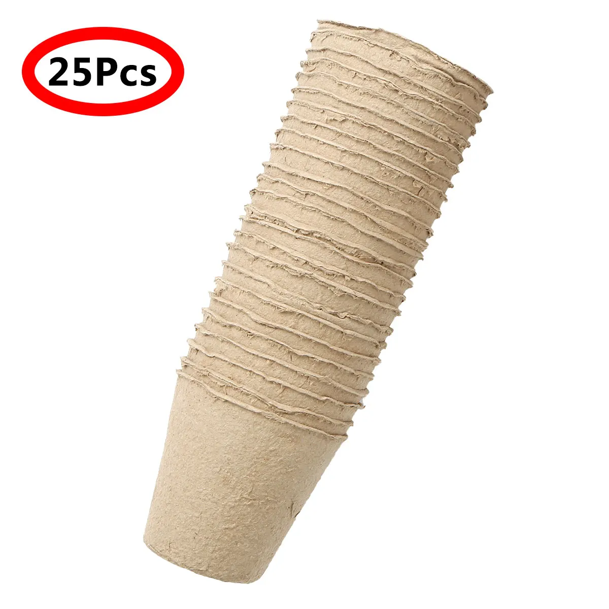 Комплект включает в себя: 25/50x биоразлагаемые торфяные горшки