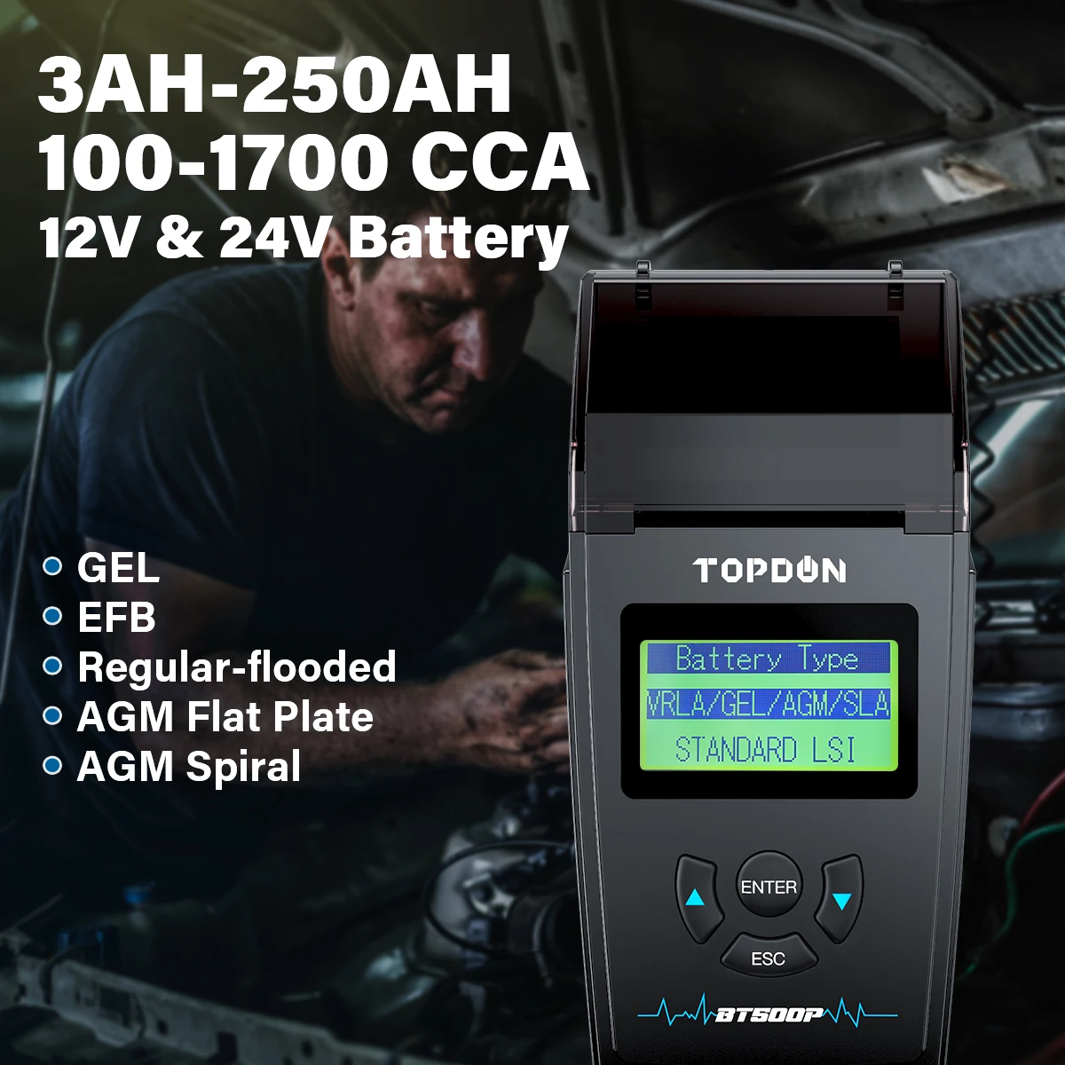 TOPDON BT500P-Мощный тестер батареи со встроенным принтером