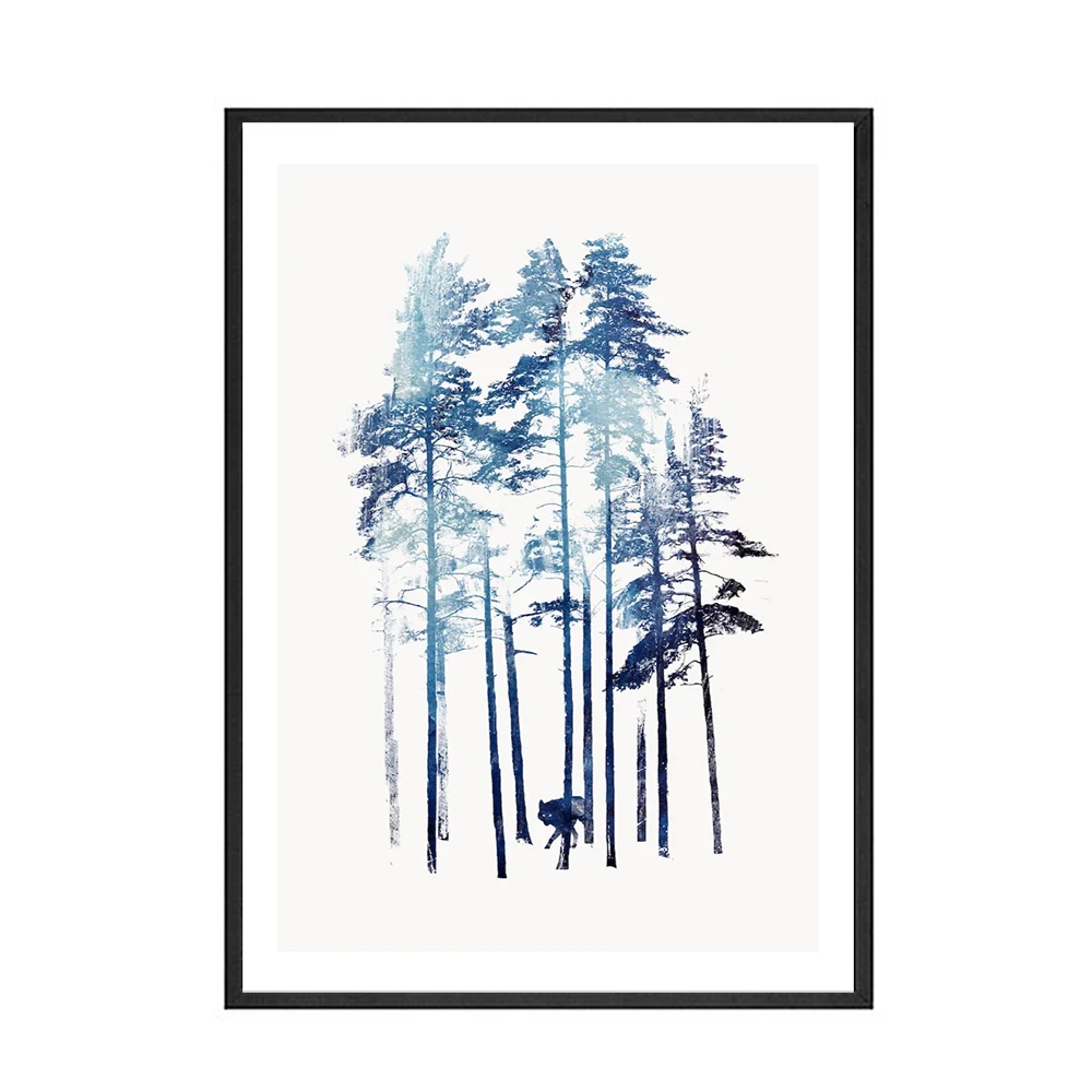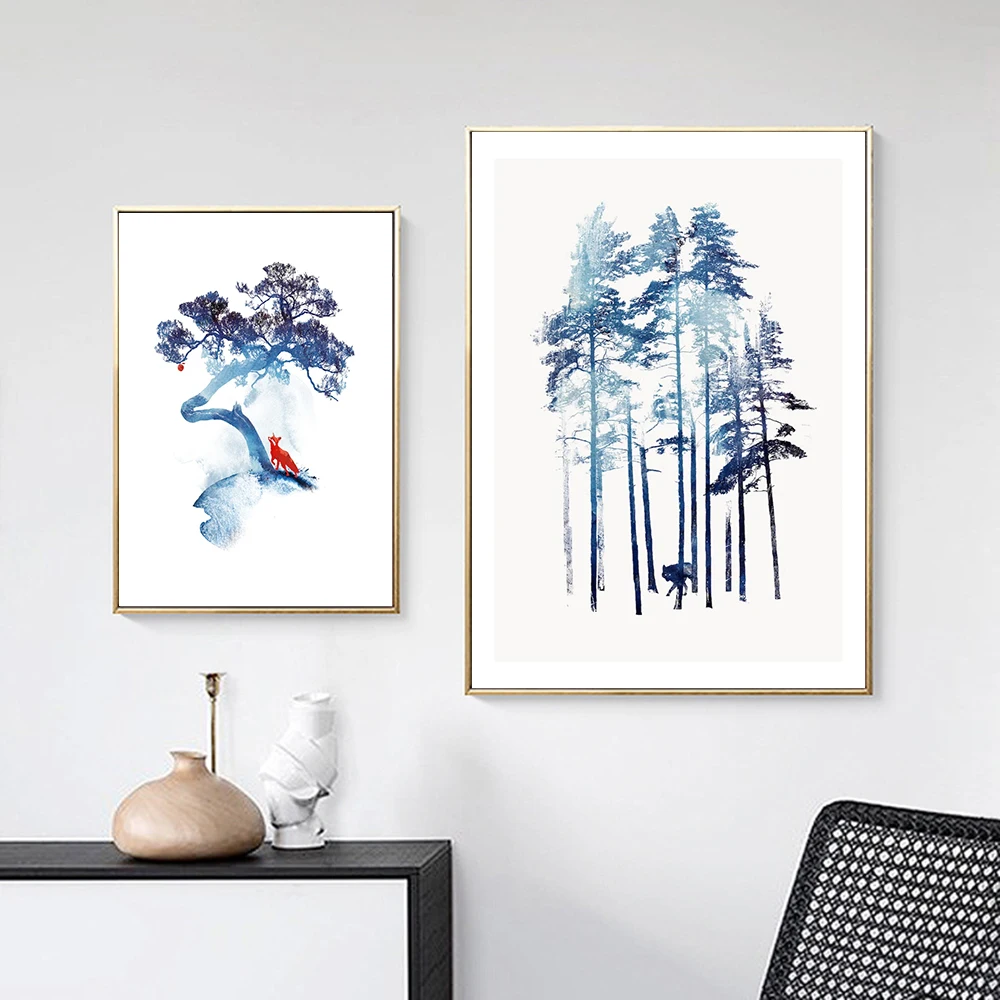 Скандинавский декор, лес, пейзаж, настенная живопись, холст, синее дерево, Постер и печать, холст, живопись, Декор, картина для гостиной, домашний декор