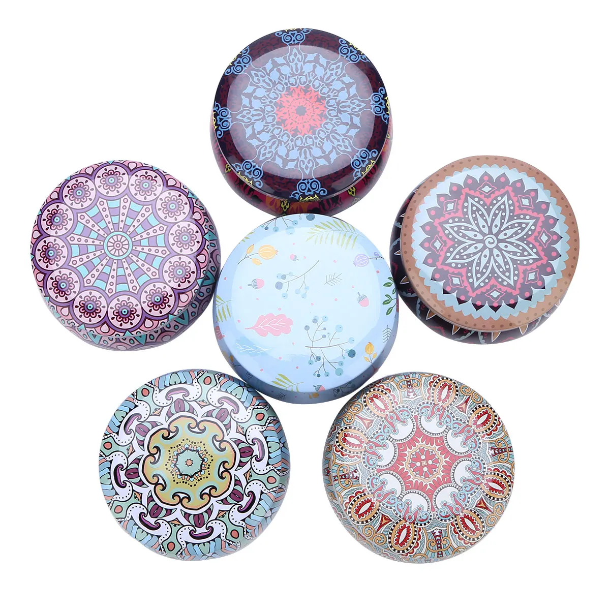 Круглые винтажные печатные пустые металлические жестяные банки для изготовления свечей, декоративные контейнеры, коробки для хранения