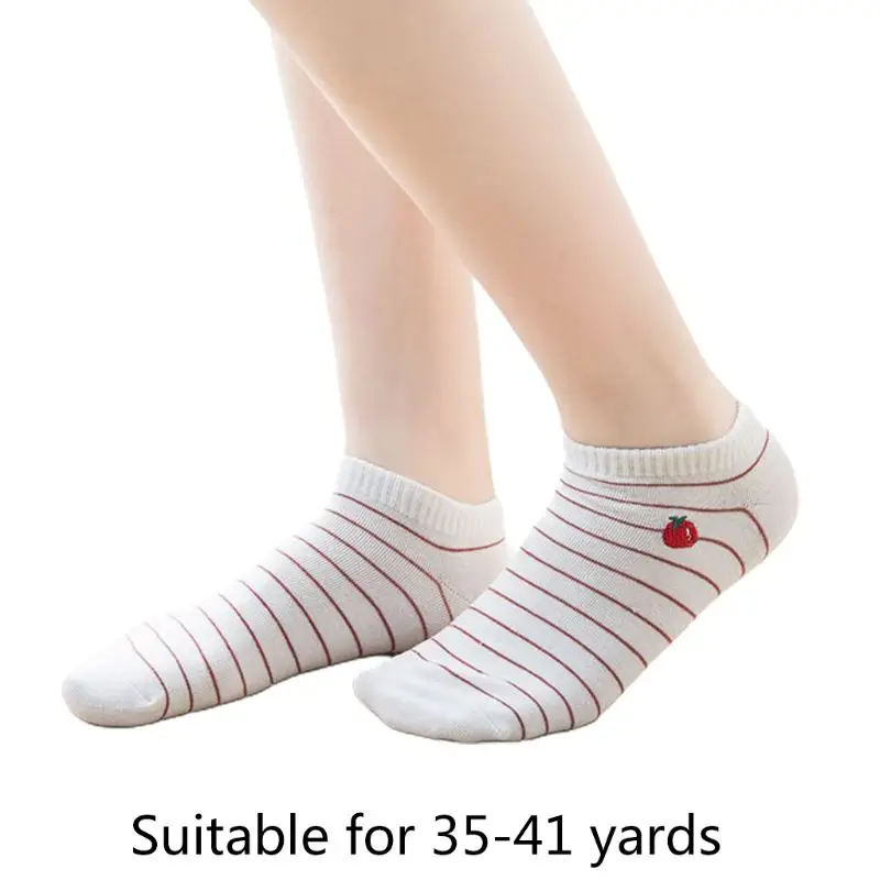 Носки-башмачки с мелким носком, с принтом в полоску, милые помидоры/грибы/пумокин/редис/зеленый китайский лук, овощной emrboidery.