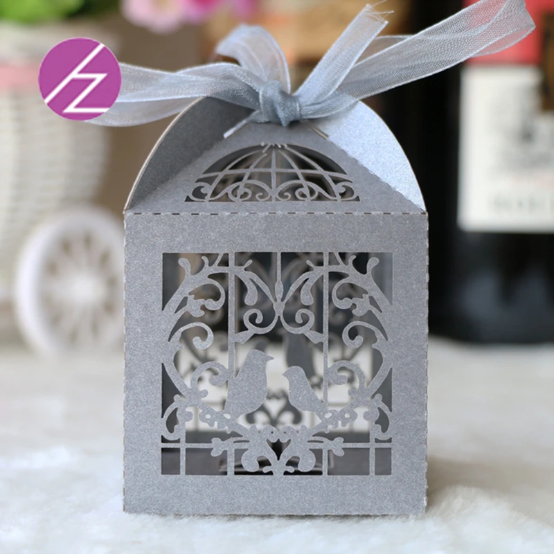50 шт полый лазерный разрез жемчужные бумажные коробки конфет, гость жених свадебная церемония дизайн, подарочные коробки с лентой
