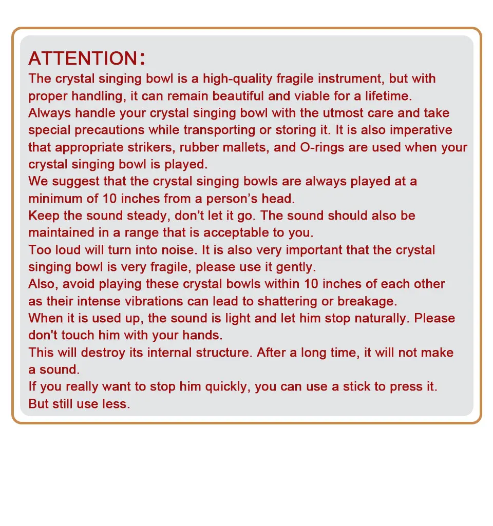 1. Как правило, Хрустальная Поющая чаша будет отправлена в течение 5 рабочих дней; Покупатель получит товар в течение 7-14 рабочих дней. (PS: различные способы транспортировки, различная своевременность транспортировки) 2. В зависимости от страны получателя, доставка товаров DHL, FEDEX, UPS или EMS. 3. Наши продукты являются авторизованными продавцами на Aliexpress. Мы стремимся предоставлять высококачественные хрустальные поющие чаши и лучший сервис для всех наших клиентов. 4. При повреждении или утере во время транспортировки, он будет заменен бесплатно. 5. Если у вас есть какие-либо вопросы, пожалуйста, свяжитесь с нашим менеджером по обслуживанию клиентов.