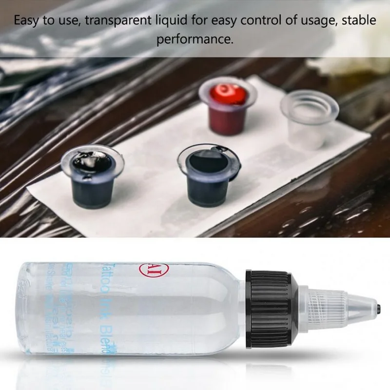 1. Безопасная формула, мягкая без побочных эффектов, без раздражения вашей кожи. 2. В основном используется для смешивания разноцветных пигментов для разбавления цвета вязких пигментов. 3. Профессиональный продукт для разбавления и смешивания чернил татуировки, простой в эксплуатации. 4. Простота в использовании, прозрачная жидкость для легкого контроля использования, стабильная производительность. 5. Идеально подходит как для профессиональных татуировщиков, так и для начинающих.