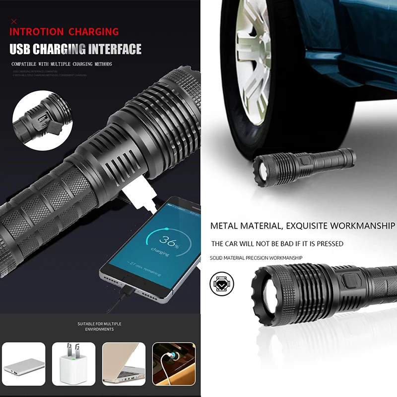 Бренд: yuaitan Модель: FL945 Источник светильник: XHP70 Цвет внешнего вида: черный Размер: 17,5*4,8*3,5 см Источник питания: 1 батарея 18650/1 батарея 26650/батарея 3AAA (не входит в комплект) Время освещения: 2-8 часов Способ зарядки: Прямая зарядка через USB Диапазон: >500 метров Класс водонепроницаемости: IPX-6 Вес нетто: 200 г (без батареи) Материал корпуса: алюминиевый сплав Масштабируемый: Регулируемый фокус Материал: алюминиевый сплав 5 режимов переключения: 100%-70%-50%-вспышка-SOS (Длительное нажатие для выключения) Светосветильник индикатор: Красный светильник во время зарядки-зеленый светильник после зарядки-зеленый светильник при разрядке-красный светильник, когда мощность меньше 20%. Особенности: напоминание о низком заряде батареи