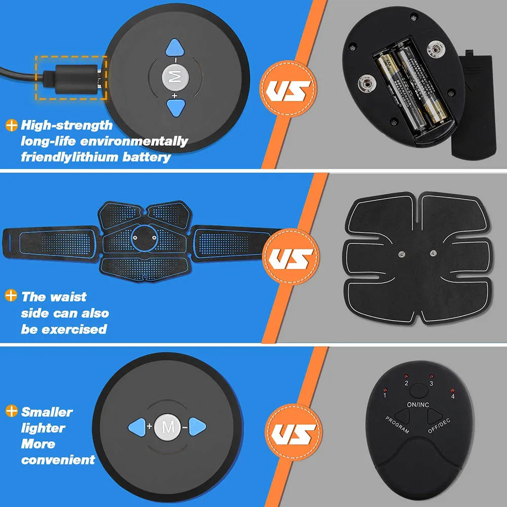 √ 【Черный и синий дизайн в форме пояса-больше покрытия для мышц-EMS стимулятор мышц разработан как пояс, который адаптируется к изгибам тела и обеспечивает больше покрытия подушечками для мышц. Идеально подходит для ваших рук, груди, верхней и нижней части живота, спины, ног, ягодиц, бедер, икр и талии. √ 【Usb-зарядка: Экономичная и экологически безопасная-встроенный литиевый аккумулятор и usb-кабель в комплекте, который может не только сэкономить частые затраты на замену батареи, но и защитить окружающую среду. Интенсивность упражнений машины увеличивается на 50% по сравнению с продуктами, работающими от батареи. Вы можете зарядить этот мышечный Стимулятор с помощью ноутбука или внешнего аккумулятора в любое время и в любом месте. √ 【 6 режимов и 9 уровней интенсивности-этот EMS тренажер abs включает в себя 6 режимов и 9 уровней интенсивности, подходит для всех типов спортсменов, которые ценят различные уровни интенсивности упражнений. 6 режимов и 9 уровней интенсивности, от разогрева до интенсивных упражнений и, наконец, до расслабления: сжигание жира, расслабление и упражнения. Вы можете управлять режимом и уровнем, как вы хотите, с помощью 3 кнопок на машине. Кнопка «M» может менять режимы √ Технология EMS и эффективная Домашняя Тренировка. Технология-EMS (стимуляция электрических мышц) предназначена для тренировки мышц, чтобы применять низкие частоты непосредственно к мышечным клеткам или клеткам ожирения, которая поможет вам получить легкую и высокопроизводительную тренировку. Вы можете тренироваться и тренироваться с помощью этого EMS тренажера abs, не выходя в тренажерный зал. 20 минут в день, эквивалент 2000 м бега √ 【Гелевые подушечки с сильной адгезией: легко и практично-мы использовали более толстый силикагель, чтобы гарантировать, что гелевая Подушка будет крепко прилипать к вашему телу. Светильник, беспроводной, съемный и мягкий на коже. Вы можете свободно использовать его дома, на работе или во время путешествий, и вы можете наслаждаться упражнениями в любое время и в любом месте, даже если вы смотрите телевизор, вы можете заниматься спортом. Гелевые накладки заменяются