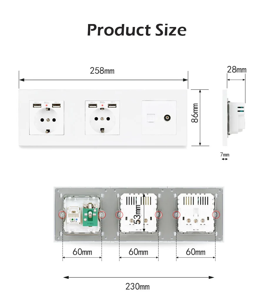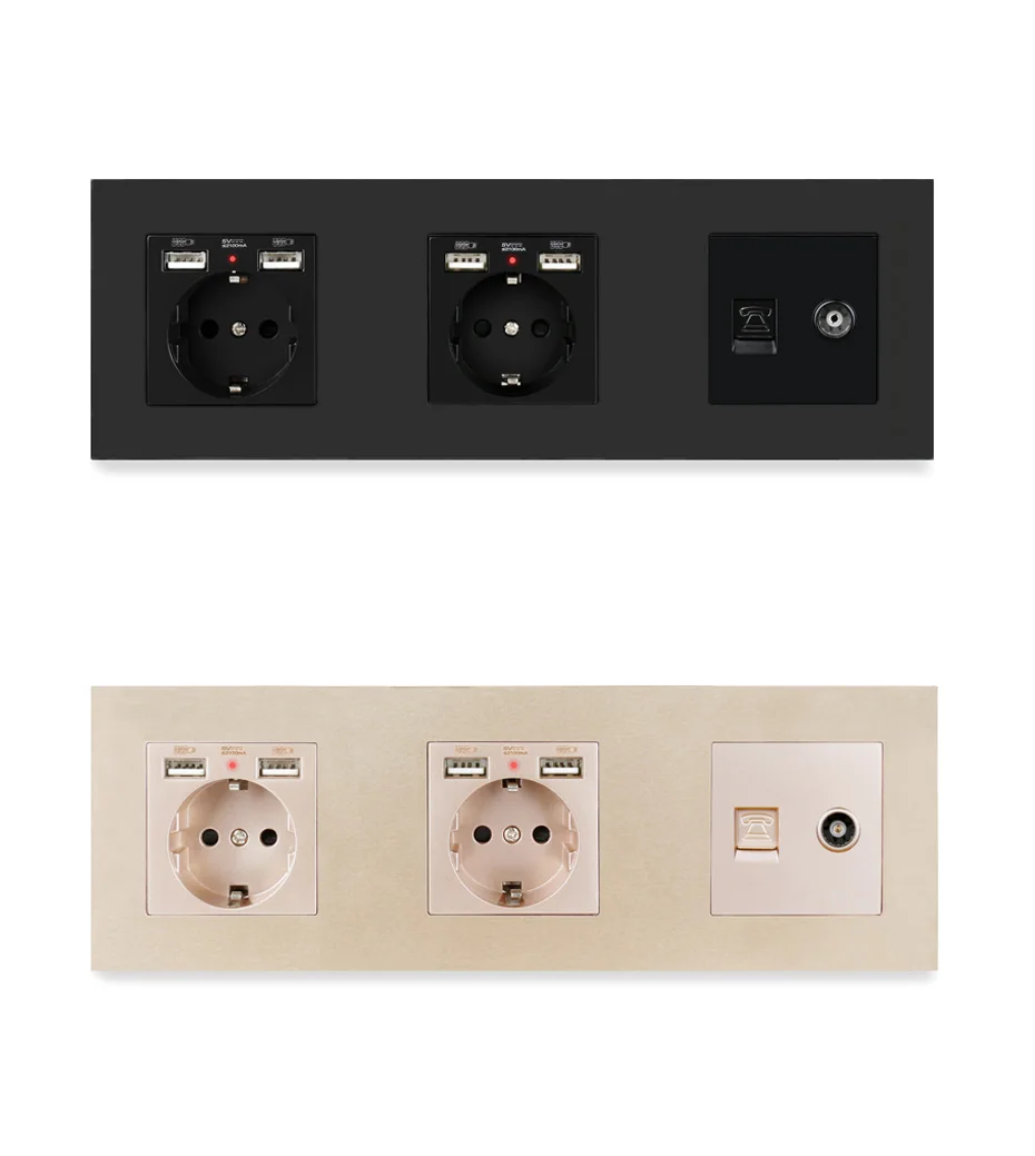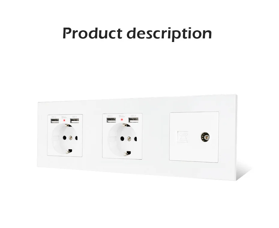 UNKAS стандарт ЕС черная пластиковая панель двойная розетка с 4 USB зарядным портом + RJ11 телефонный разъем + ТВ разъем