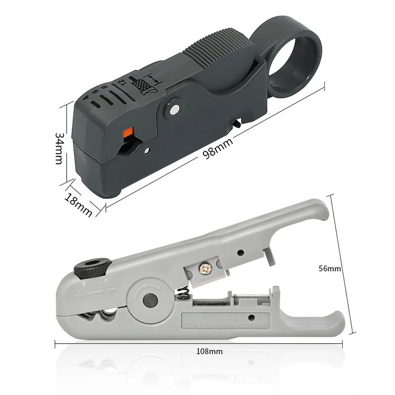 * Регулируемые лезвия: регулируемый зачистки лезвия для различной толщины изоляции, предотвращая повреждение экранирования и проводников.