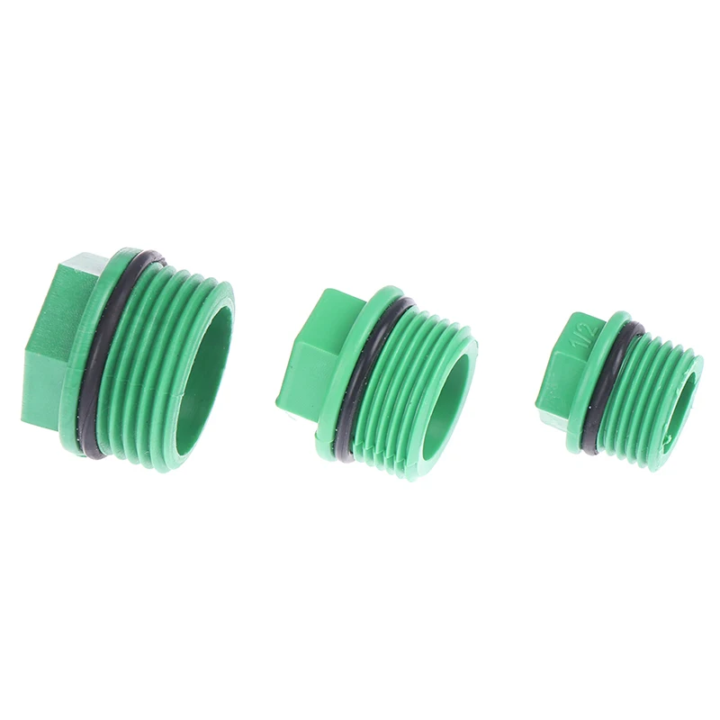 Размер торцевой вилки PPR составляет 1/2 '' (20 мм), 3/4'' (25 мм), 1 '' (32 мм) резьбовой штекер, жаростойкое, холодное сопротивление, его долгий срок службы более 50 лет.