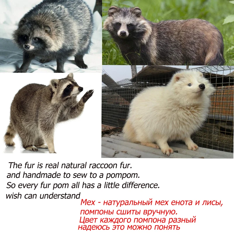 Все супер большие помпоны, все реальные фотографии Мех-настоящий натуральный мех енота и ручной работы, чтобы сшить помпон. Поэтому каждый меховой помпон имеет небольшую разницу. Wish на ваше понимание