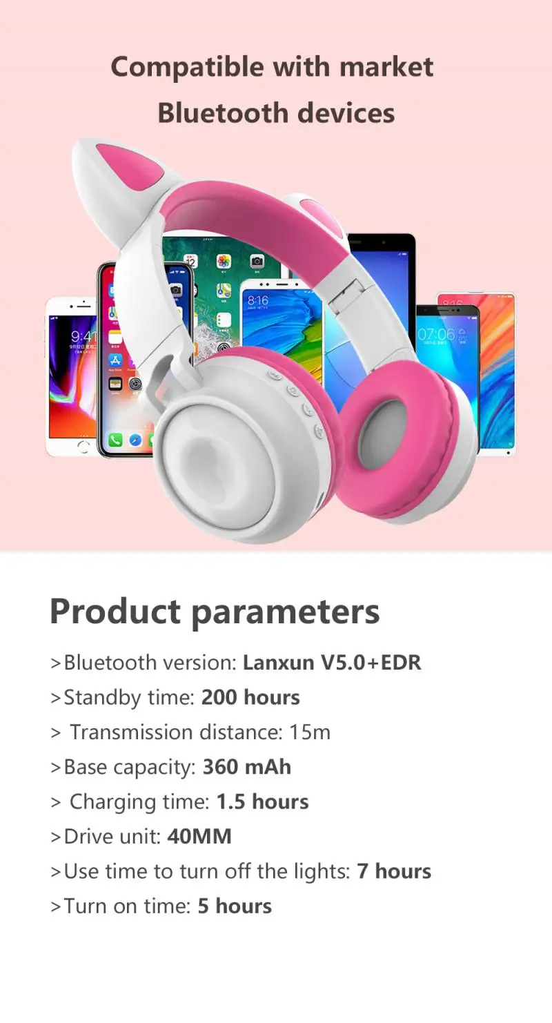 1 * Bluetooth милые светящиеся наушники