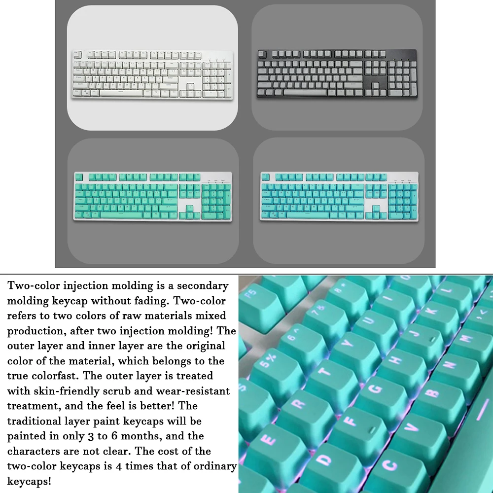 1. Допускается небольшая погрешность в размере из-за ручного измерения. 2. Напоминаем, что из-за световых эффектов и настроек яркости/контрастности монитора и т. д., цвет на фотографии веб-сайта и фактический товар могут немного отличаться. 3. Продукт не подходит для всей клавиатуры, пожалуйста, покупатели внимательно наблюдают за деталями продукта, я не понимаю всю клавиатуру, поэтому я надеюсь, что покупатель может оценить их самостоятельно. 4. Это двойной цвет литья под давлением, так что там будет нерегулярный прозрачный слой в нижней части. 5. Наша упаковка упаковывается в пластиковые коробки, аккуратно помещается, что значительно уменьшает ущерб во время транспортировки.