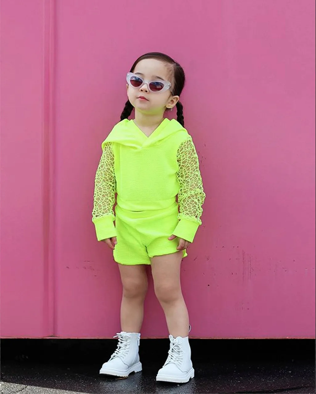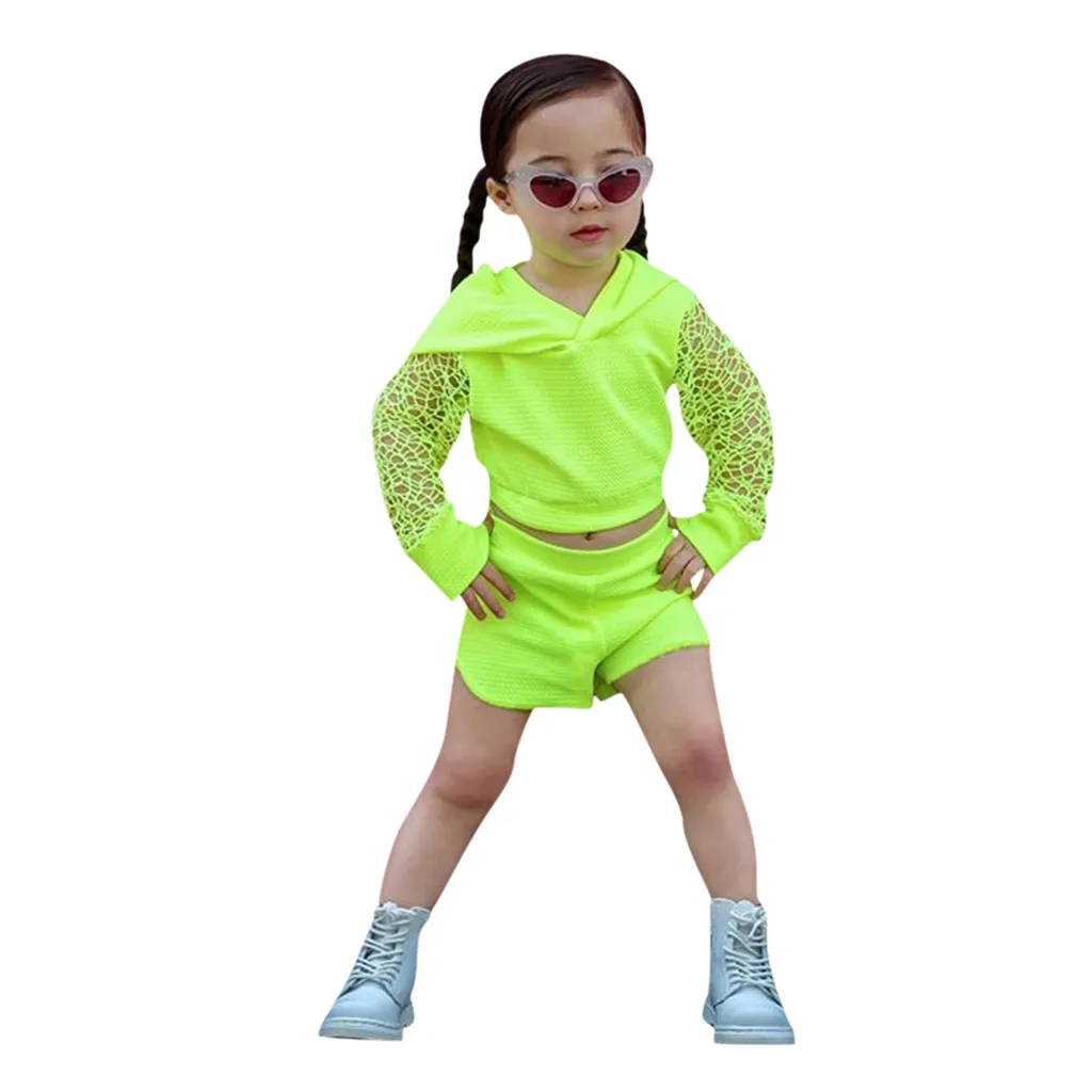 Комплект одежды для маленьких девочек; Модный однотонный топ с капюшоном + шорты
