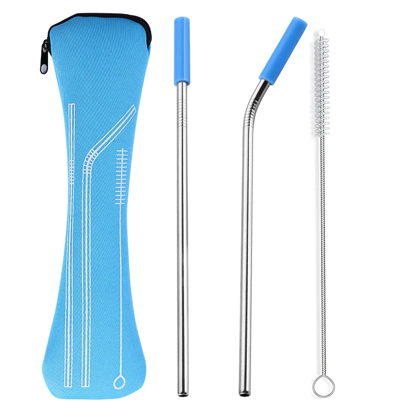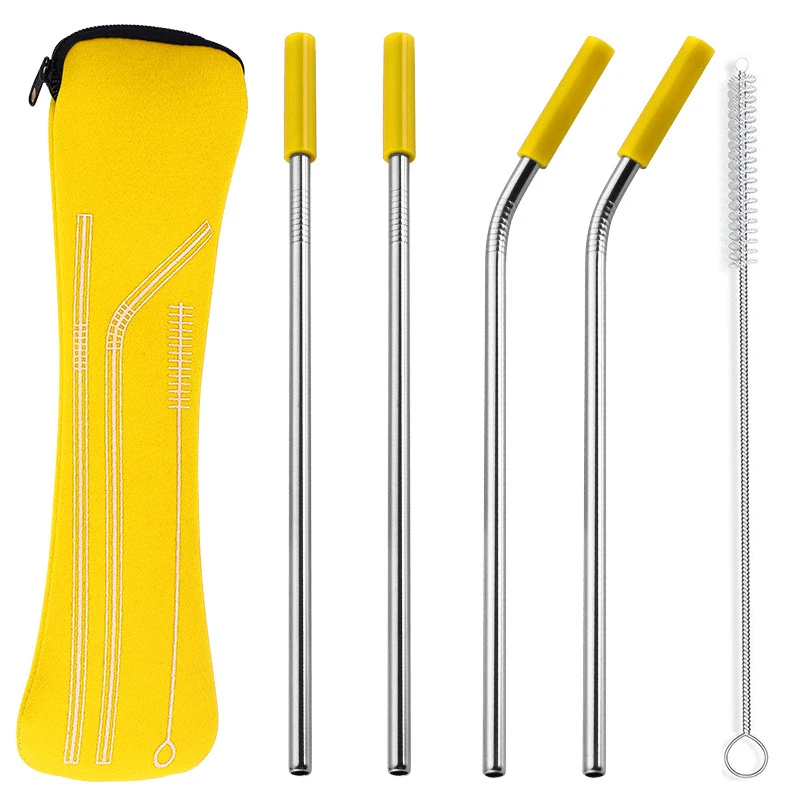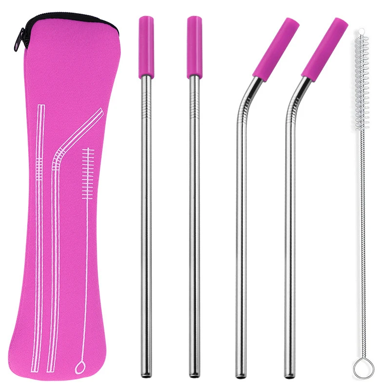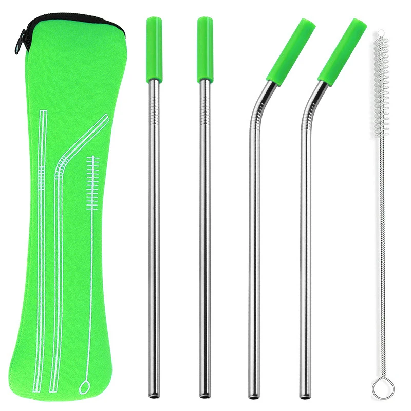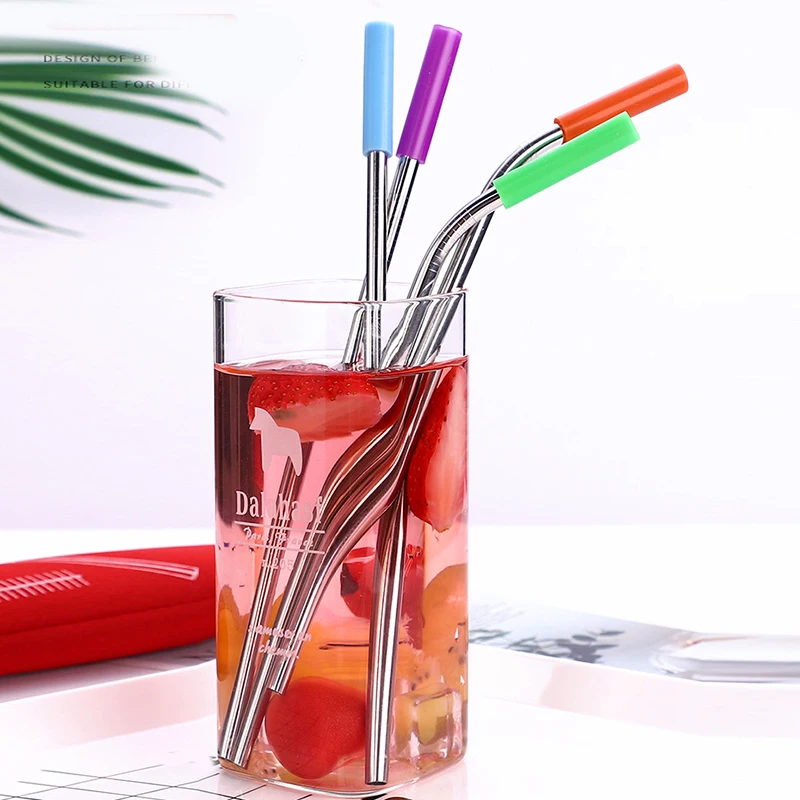 Многоразовые прямые согнутые соломинки из нержавеющей стали с силиконовыми наконечниками