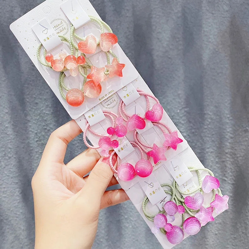 8 шт./компл., новинка, милые разноцветные резинки для волос с сердечками и звездами, детский держатель для хвоста, милые резинки, модные аксессуары для волос Размеры: rubbre ремешок диаметр около 3,0 см Упаковка: 8 шт./компл. упаковка