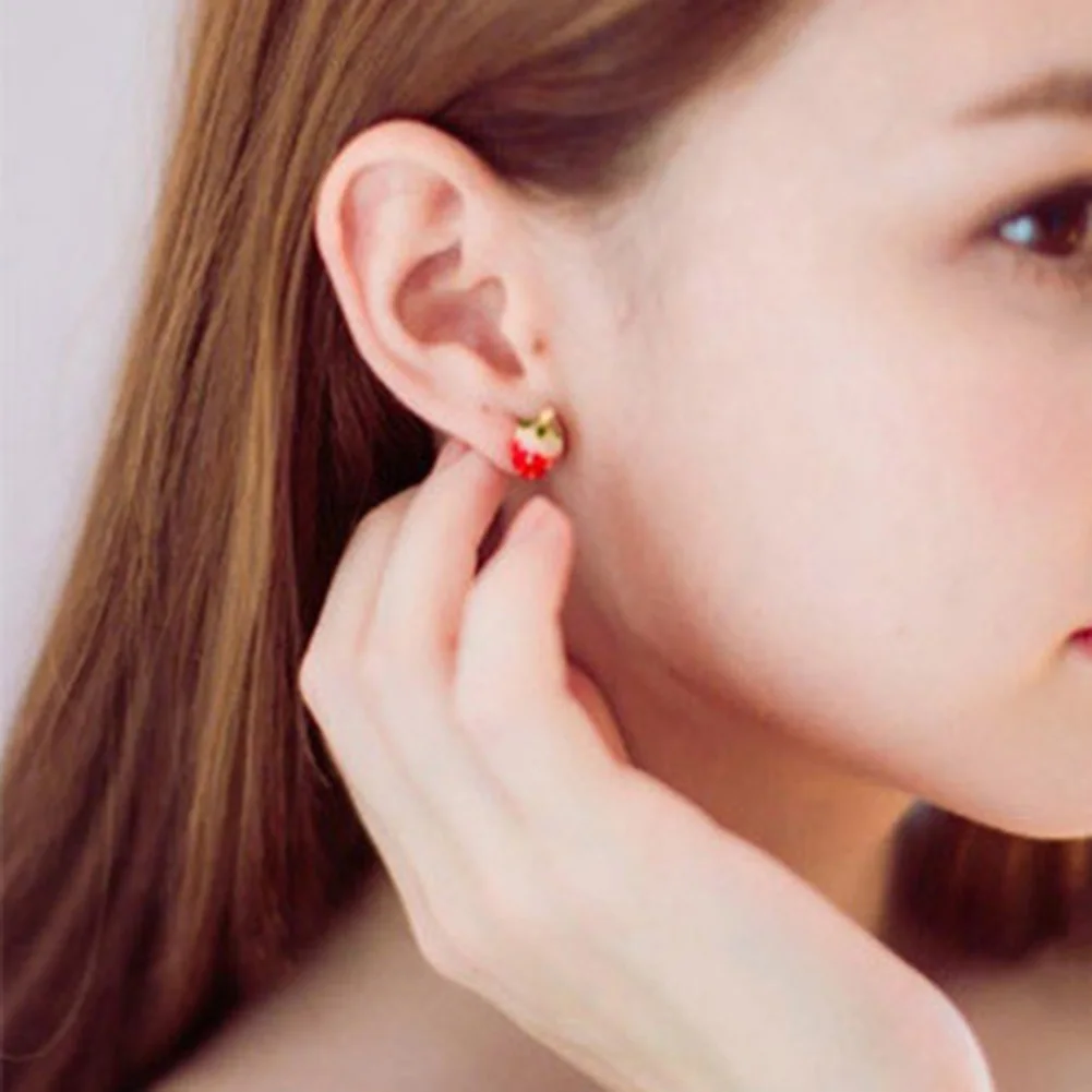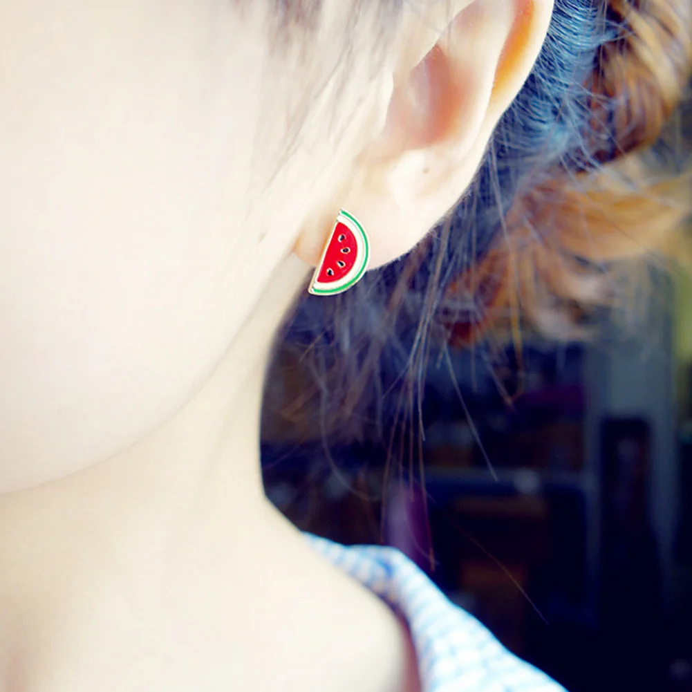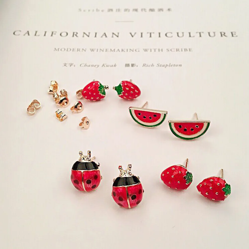 Милые женские серьги-гвоздики с фруктовым клубничным арбузом Божья Коровка Подарок