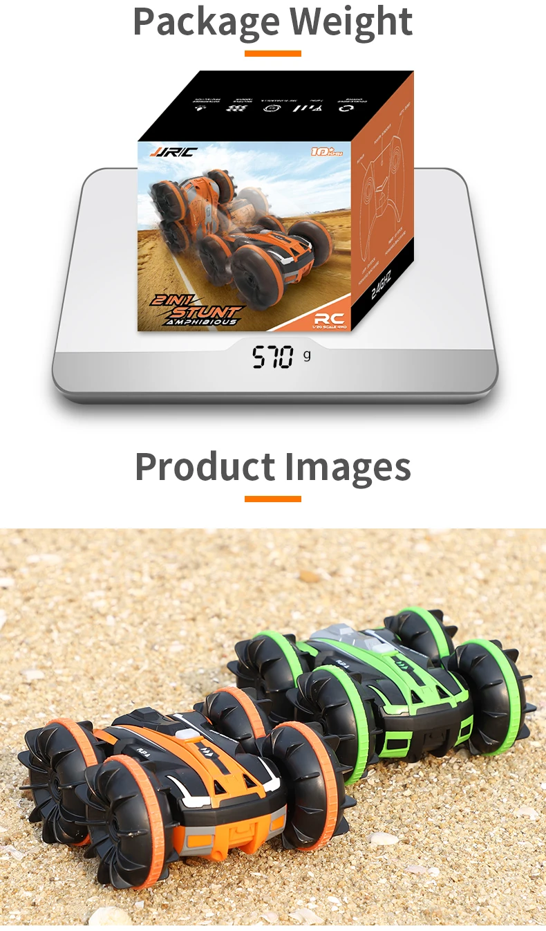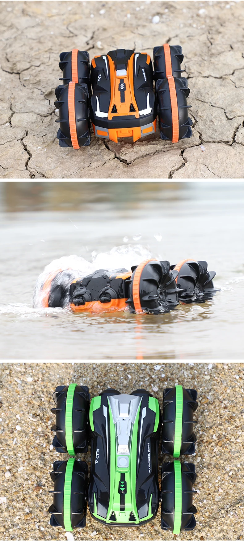 Спецификация: Название бренда: JJRC Цвет: зеленый/оранжевый (опционально) Скорость: 10 км/ч Автомобильный аккумулятор: 3,7 В 500 мАч Пульт дистанционного управления: два аккумулятора AA 1,5 В (не входят в комплект) Время зарядки: 2-2,5 часа Время вождения: гладкая поверхность: до 11 минут; Вода: до 12 минут. Дистанция дистанционного управления: Заземление: около 30 - 40 м; Вода: до 10 м. Размер изделия: 14,6*14*7,1 см Размер пульта дистанционного управления: 12,5*11,5*4 см Размер посылка: 17,5*16*13,5 см Вес автомобиля: 275 г Вес коробки: 570 г (включая автомобиль) Характеристика: Автомобиль-амфибия с дистанционным управлением, четырехколесный привод, вперед и назад, поворот влево и вправо, поворот на месте, может быть перевернут. 1. Амфибия бесплатно для вас, чтобы играть, так что вы можете играть счастливо в любое время и в любом месте 2. Двусторонний дизайн: узор с обеих сторон автомобиля является более инновационным. 3. Силиконовый переключатель: силиконовый переключатель используется для водонепроницаемой защиты 4. Вращение на 360 градусов обеспечивает визуальное воздействие Посылка включает в себя: 1х машина 1x пульт дистанционного управления 1x зарядный кабель 1х автомобильный аккумулятор 1 отвертка
