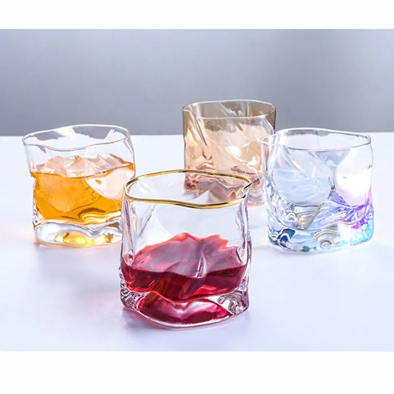 Арт-дизайн мятые брючки для виски Стекло Нерегулярные Складки водки чашки Личность бокалы для бренди со льдом, произведенный на одной винокурне стекло Rock Стекло