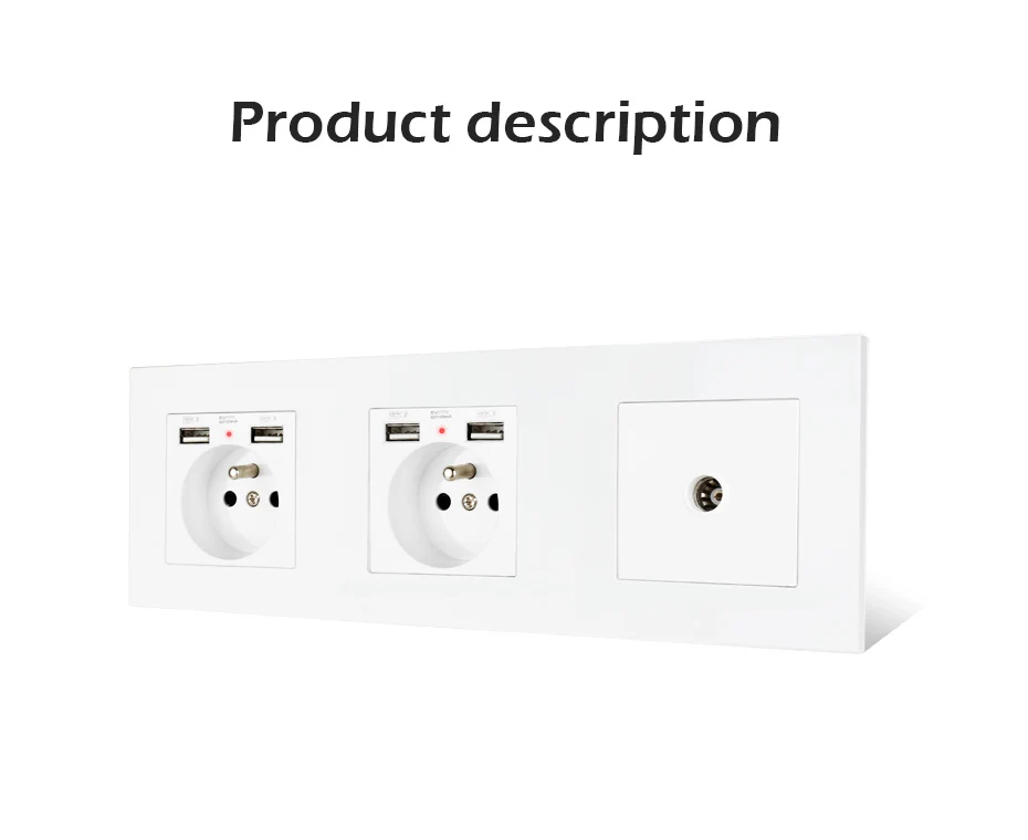 UNKAS PC пластиковая панель двойная французская стандартная розетка с 4 USB зарядным портом + 1 банда женский ТВ разъем телевидение
