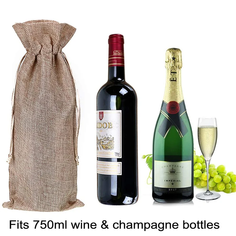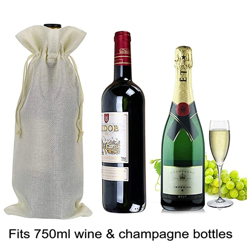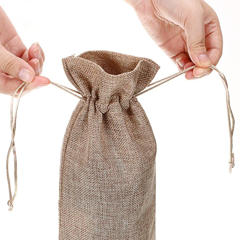 10 шт., красные чехлы для винных бутылок, сумки для бутылок шампанского, мешочки для мешков, мешочки для упаковки, натуральные джутовые бутылки для вина, подарочные сумки, мешки с Кулиской для свадебной вечеринки, новогодний мешок для вина