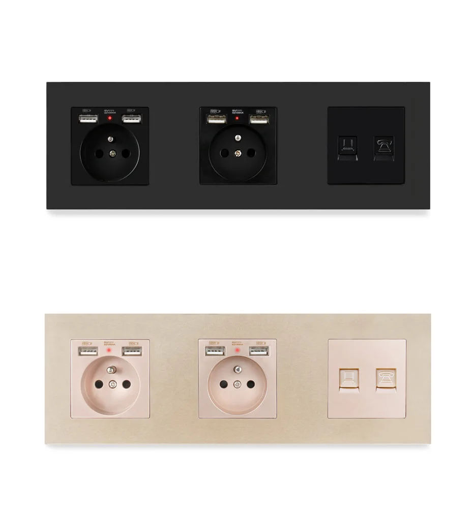 UNKAS пластиковая панель двойная французская стандартная розетка с 4 usb-портом для зарядки + RJ11 телефонный разъем + RJ45 Интернет-компьютер