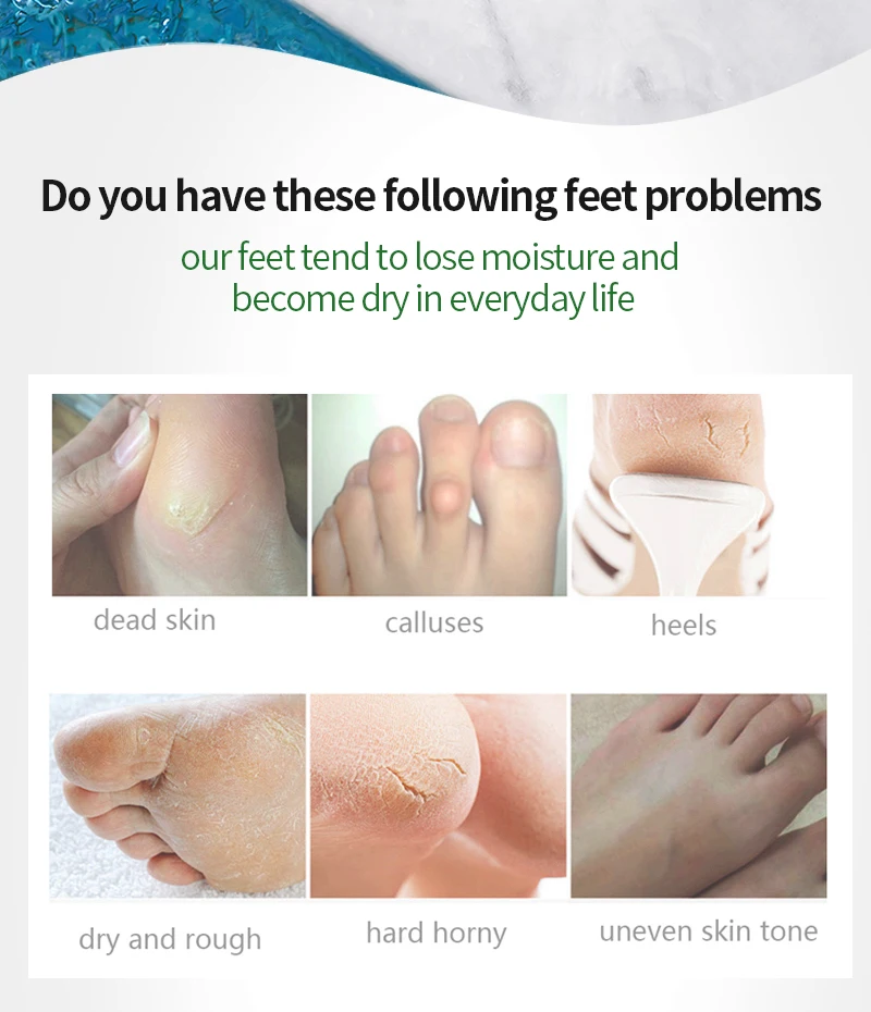 1. вымойте ноги, замочив их в горячей воде, затем высушите ноги. 2. используя ножницы, откройте пакет с маской для ног. 3. наденьте маску для ног (мы рекомендуем надеть пару обычных носков сверху, чтобы обеспечить достаточный контакт со средством). 4. через 35-95 минут снимите маску для ног, очистите ноги. 5. Большинство людей начинают очищать омертвевшую кожу после 48 часов использования, но из-за различных типов кожи кому-то может потребоваться 2-3 пары, пожалуйста, используйте маску для ног снова 48 часов позже. 6. не используйте маску, если у вас есть незалеченные порезы или раны. 7. рекомендуем замочить ноги в горячей воде через 48 часов после использования.