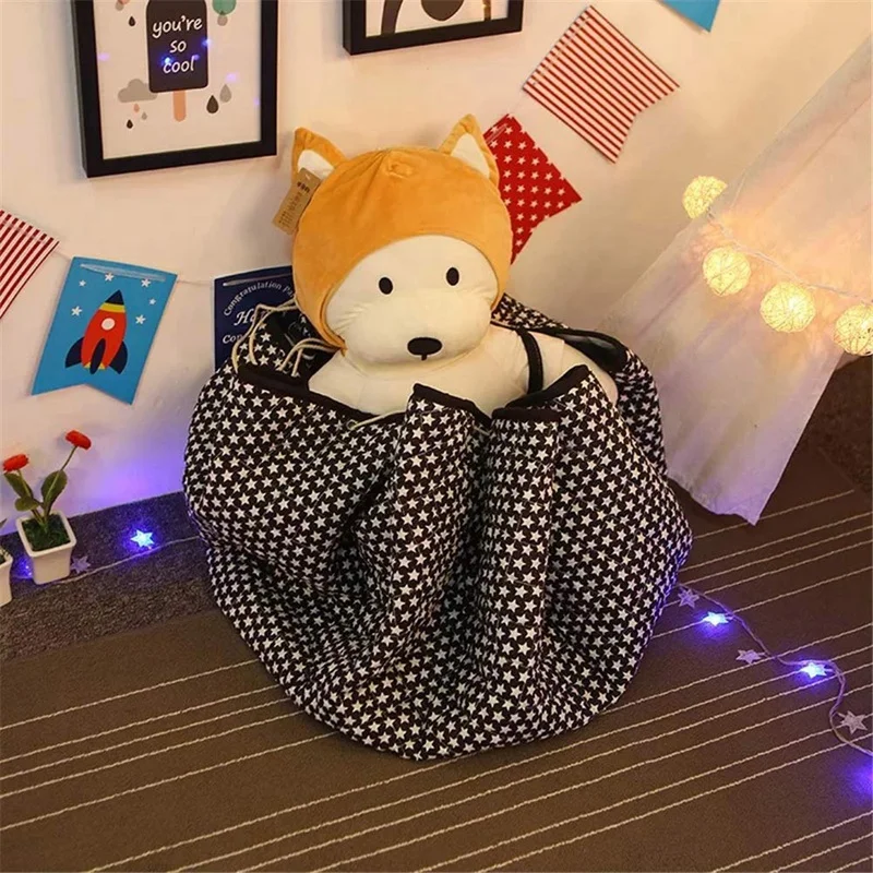Игровой коврик для активного отдыха мгновенно складывается в портативную сумку для хранения игрушек, просто потяните за веревки.
